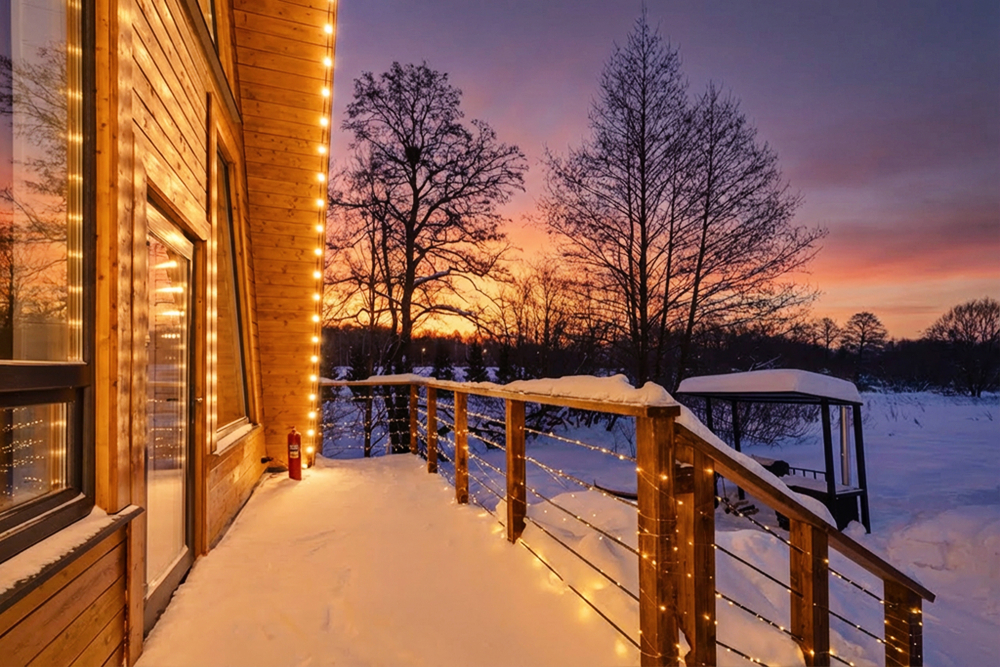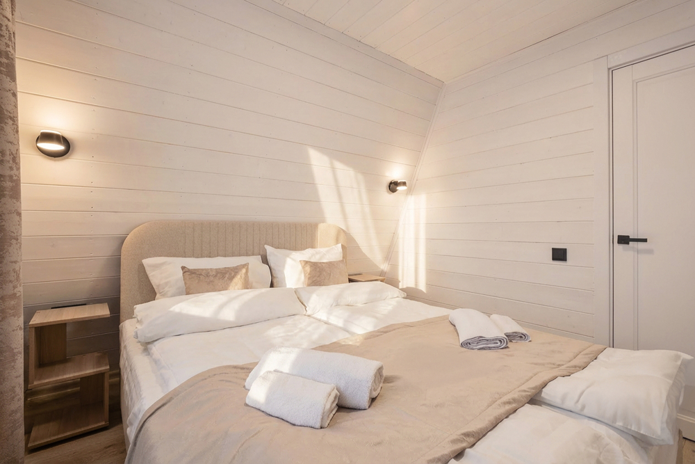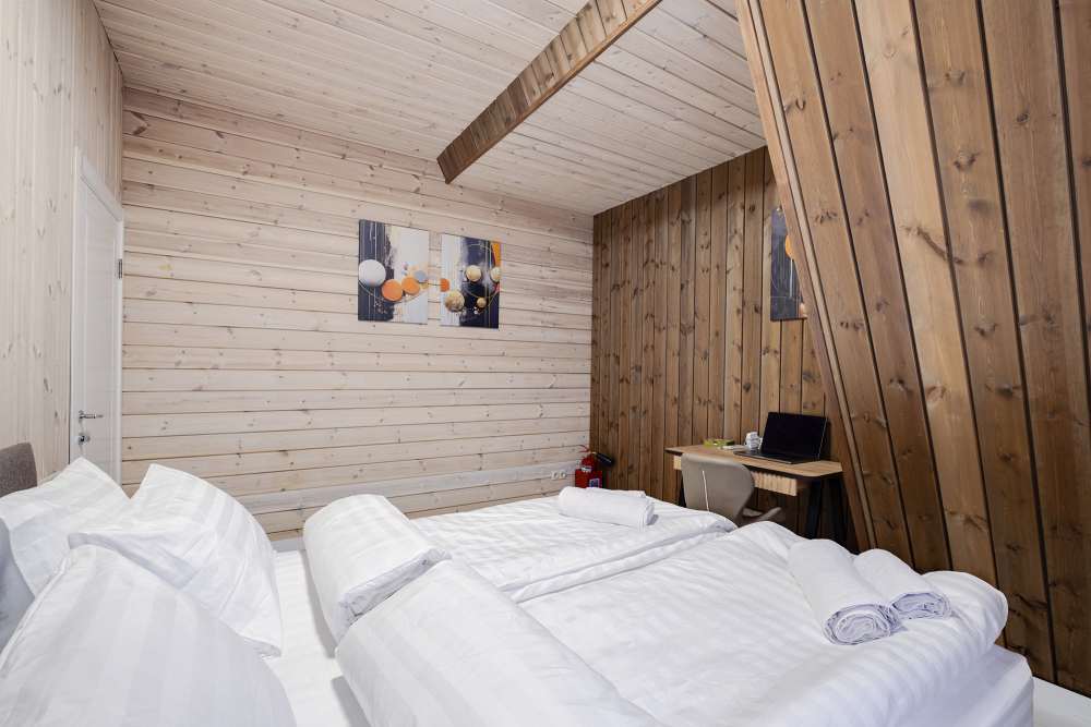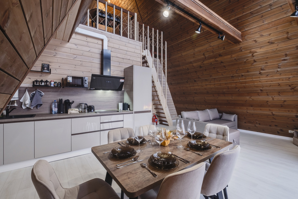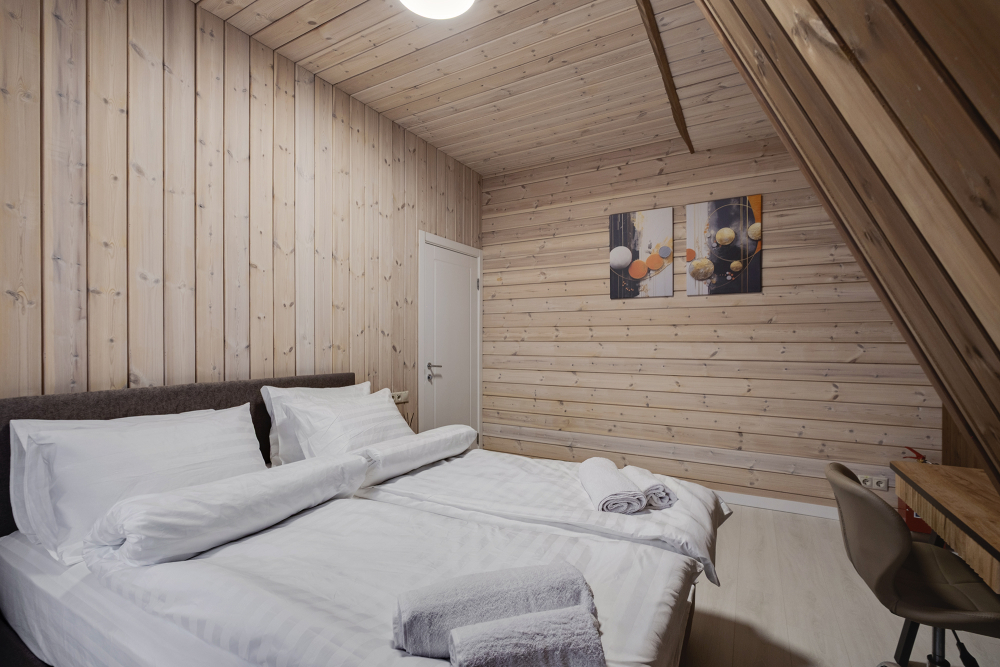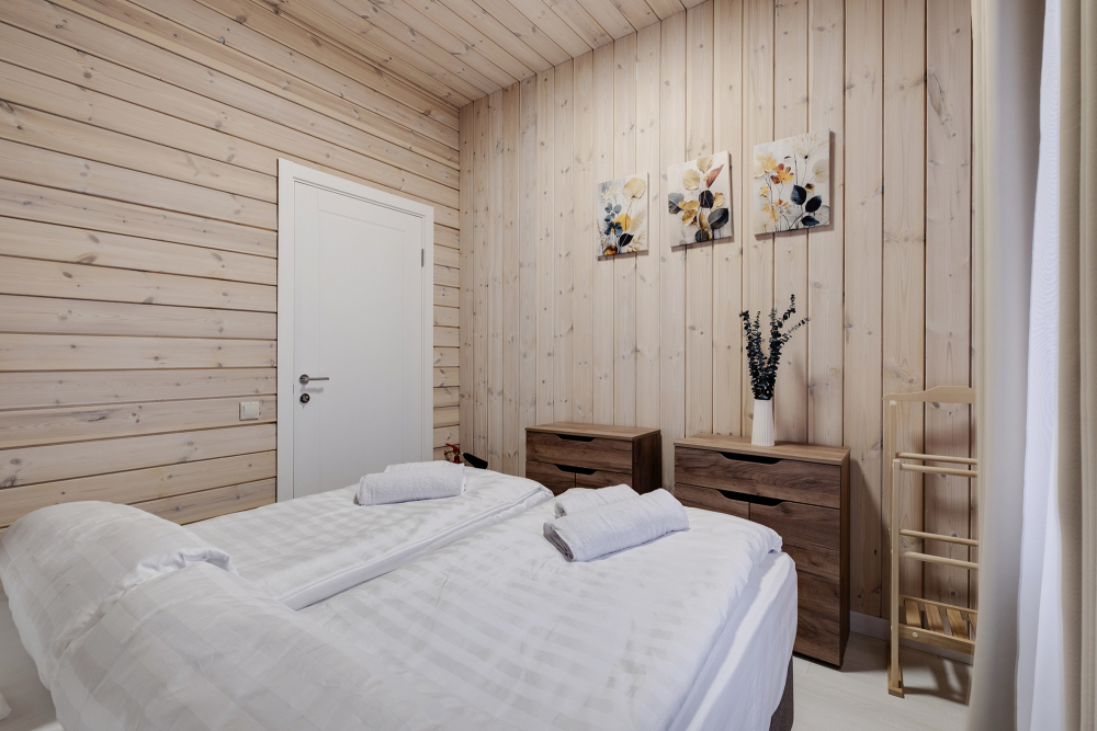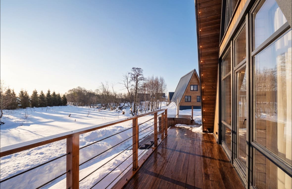 - Индивидуальные бани: каждый дом оборудован собственной баней и горячей купелью под открытым небом — наслаждайтесь релаксом и природой.