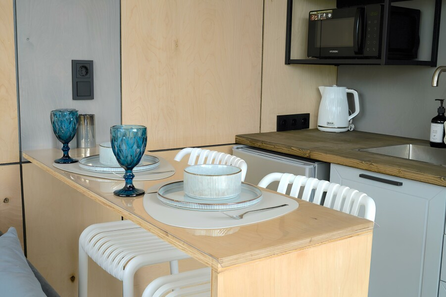 Погрузитесь в атмосферу уюта и комфорта в наших современных домах. Каждый дом полностью укомплектован качественной мебелью, техникой и всеми необходимыми удобствами. Варианты вместимости позволяют выбрать идеальный вариант для семей, компании друзей или романтического уикенда.