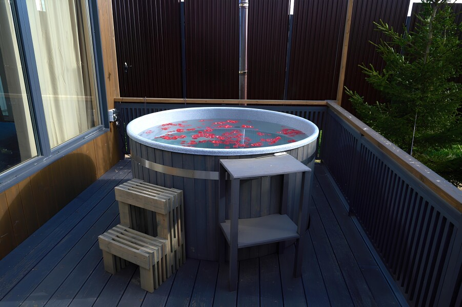 - Горячий чан под открытым небом — подарите себе незабываемые моменты релакса и оздоровления в собственном горячем источнике (предлагается почти у каждого дома).