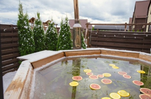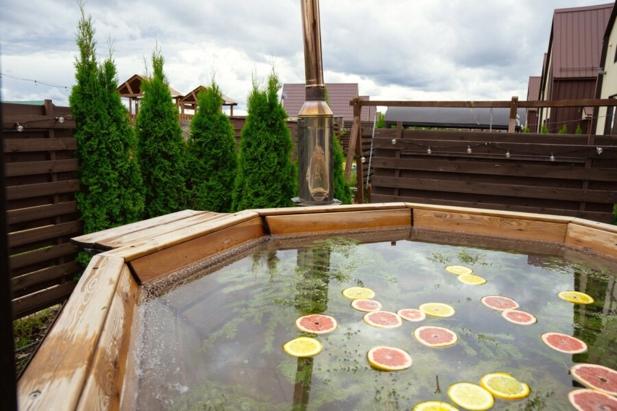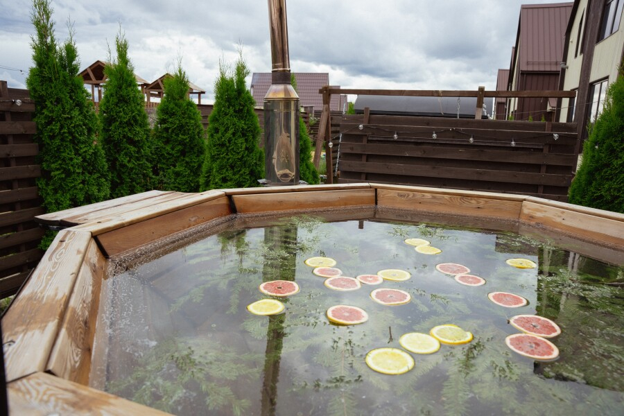 Подогреваемый чан под открытым небом. Представьте: вы погружаетесь в теплую воду, над которой клубится легкий пар, а над головой мерцают звезды. Это не просто купание — это момент абсолютной гармонии с природой и своим телом.