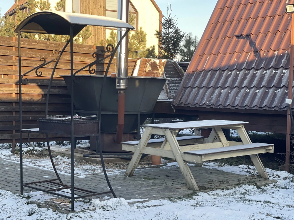 Горячий чан есть около домиков BarnHouse №5, BarnHouse №6, Дом "Семейный ХХL, ChillHouse, БарнХаус Ягель.