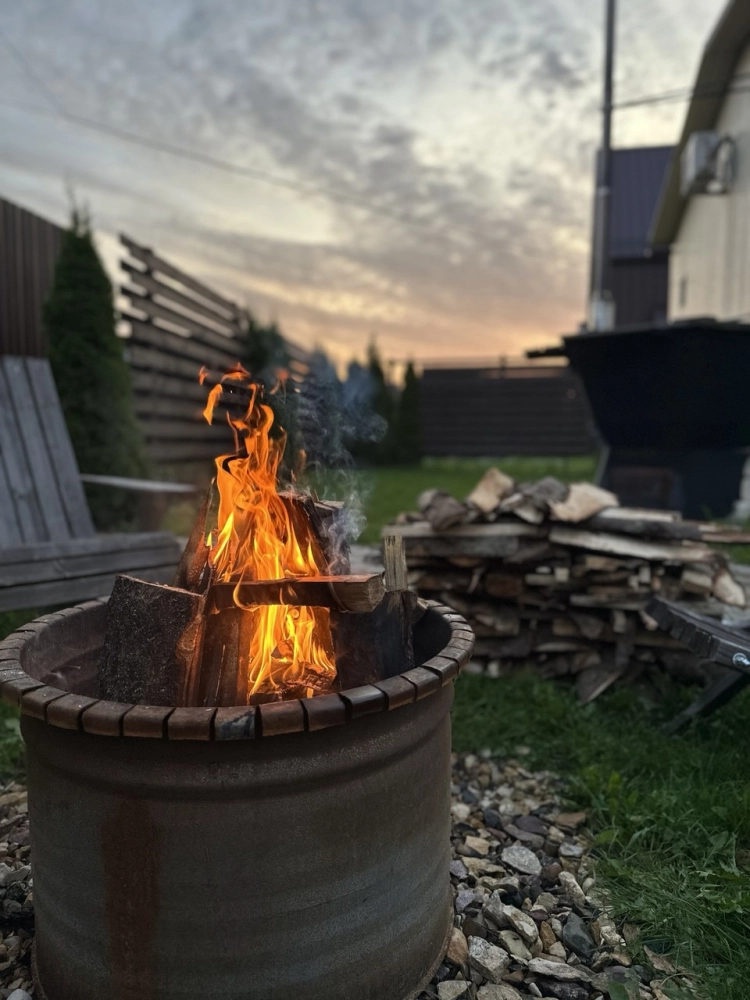 - Костровая зона — уютное место для дружеских посиделок и вечерних посиделок у огня.