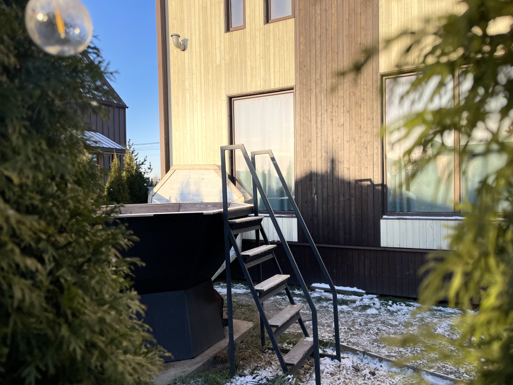 Горячий чан есть около домиков BarnHouse №6, BarnHouse №5, Дом "Семейный ХХL, ChillHouse, БарнХаус Ягель.