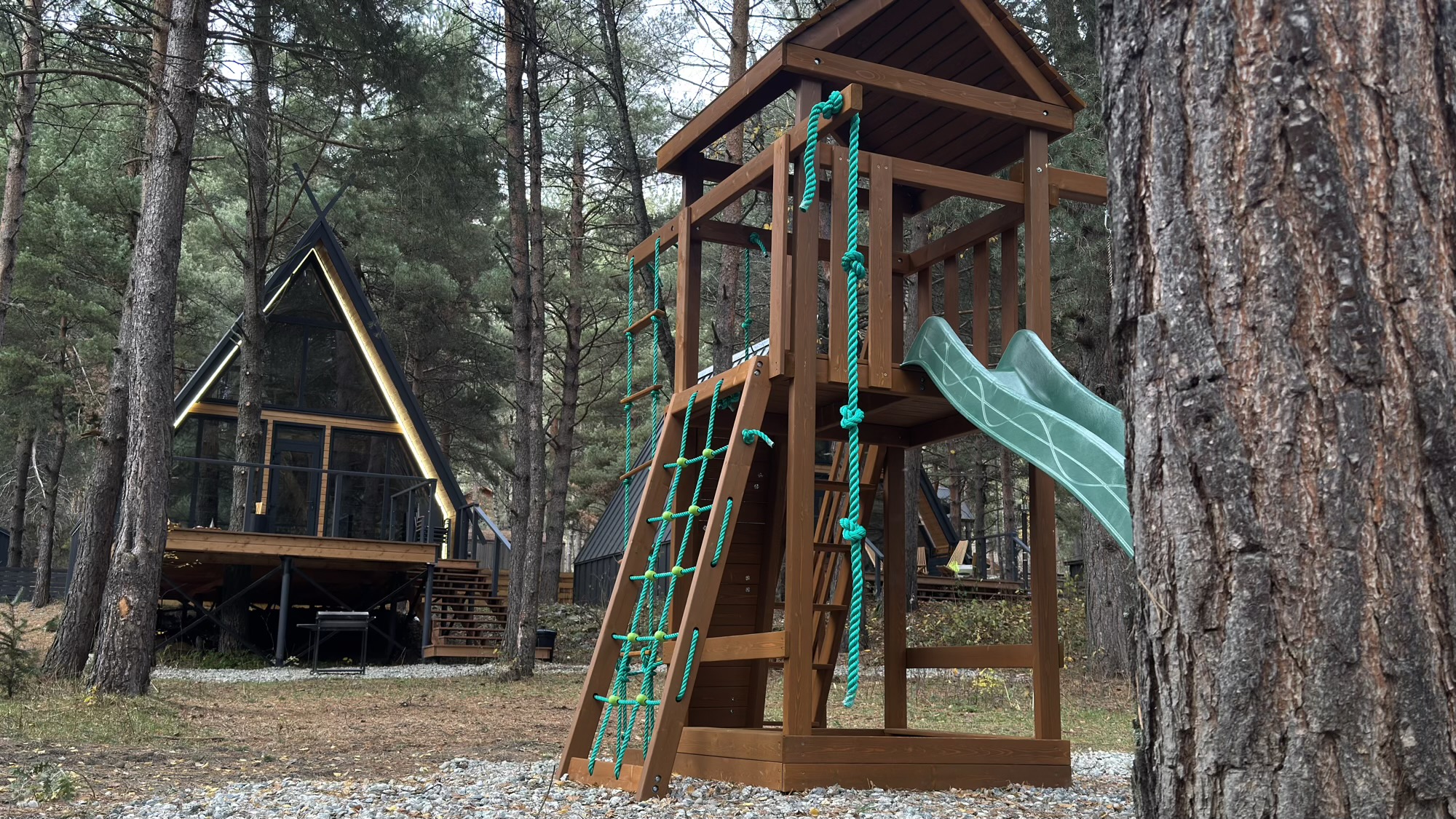 - Мастерство уюта: каждый домик имеет свою мангальную зону, а рядом расположена общая костровая площадка для уютных вечеров на свежем воздухе.