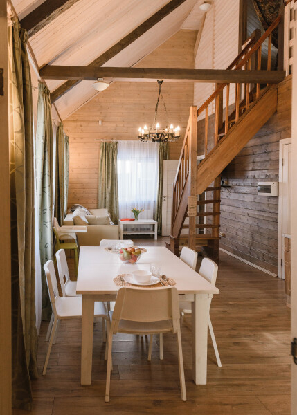 - Включена сауна в каждом коттедже — отличный способ расслабиться после активного дня.