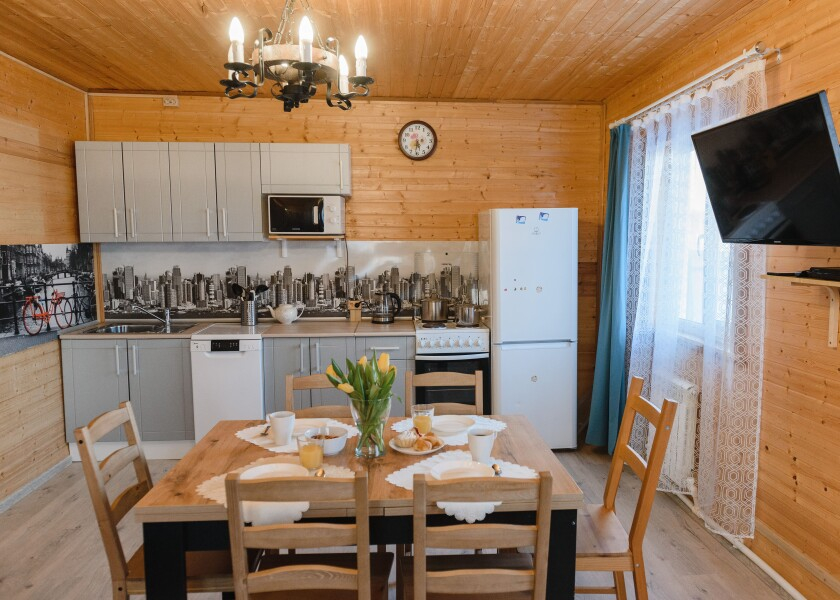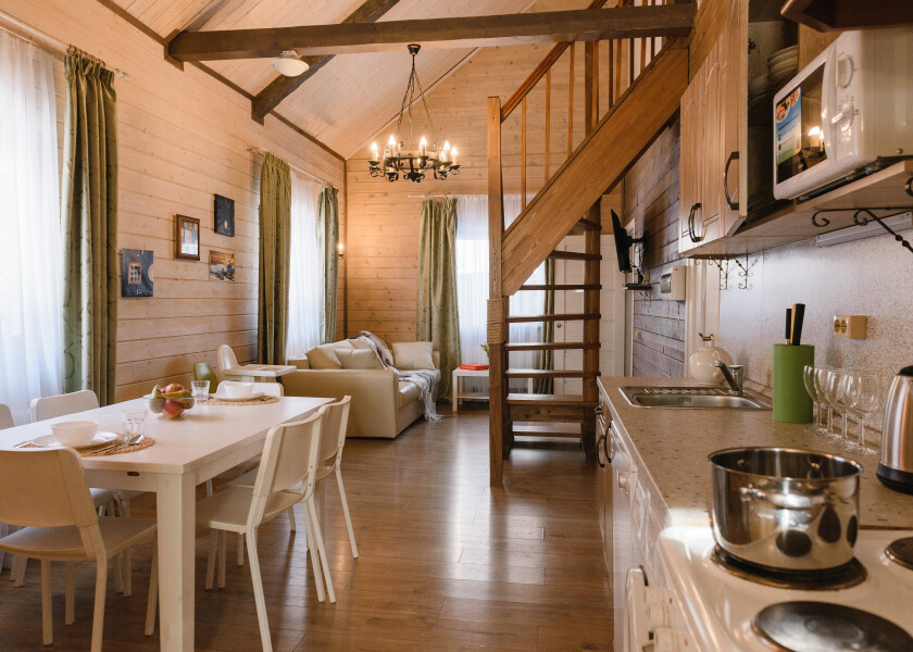 - Полностью оборудованные дома: мебель, техника и сантехника — всё для вашего комфортного проживания.