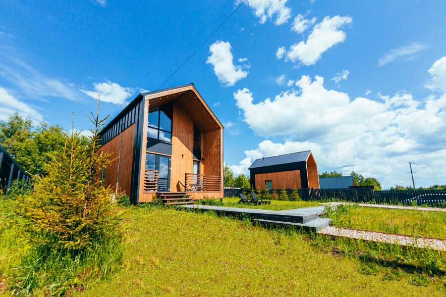 - Большой ассортимент уютных коттеджей: от современных дач до уникальных A-Frame домов-шалашей – выбирайте по своему стилю и желанию.
