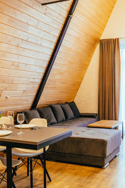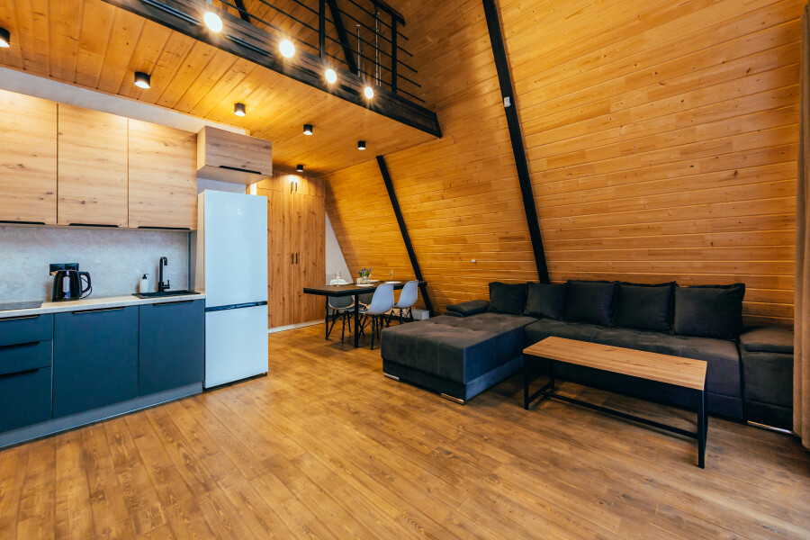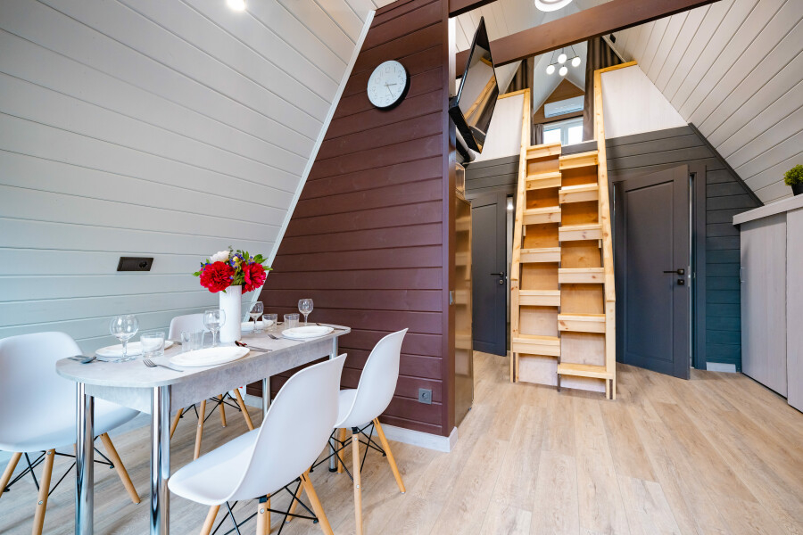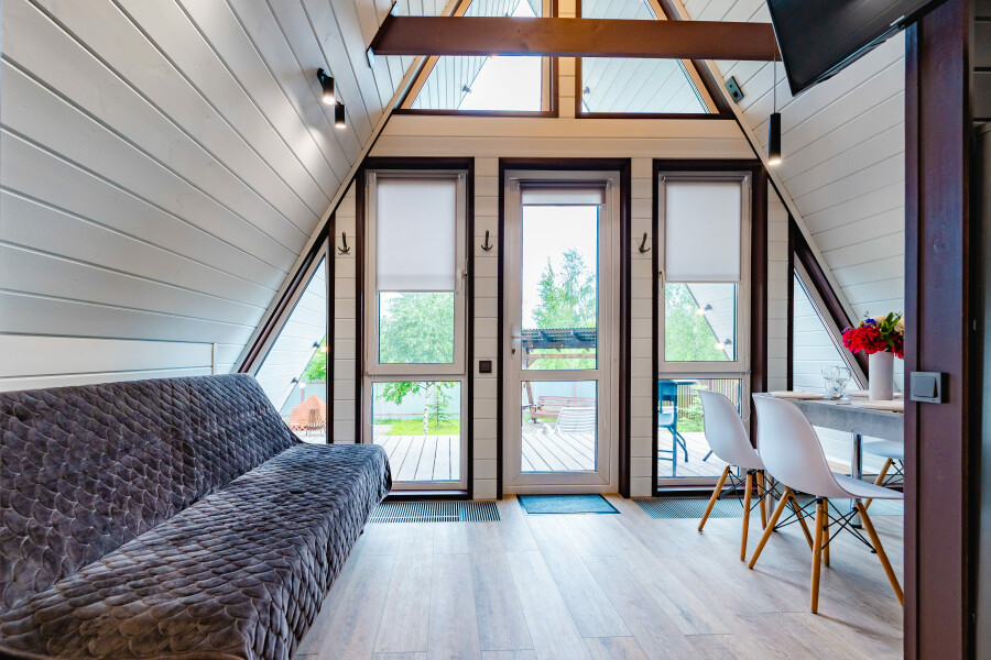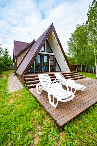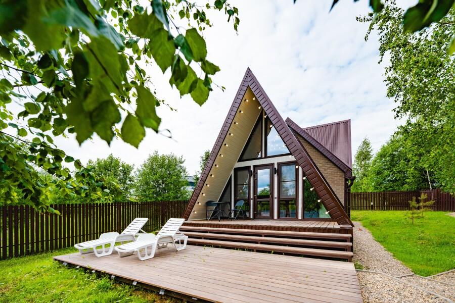 - Большой ассортимент уютных коттеджей: от современных дач до уникальных A-Frame домов-шалашей – выбирайте по своему стилю и желанию.