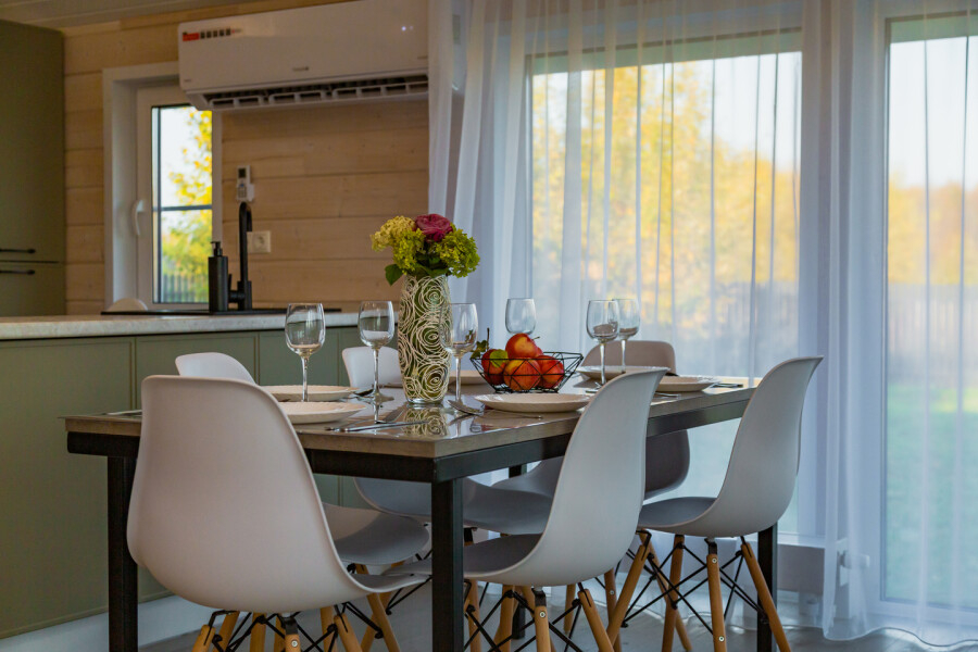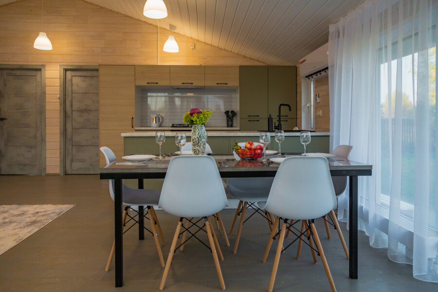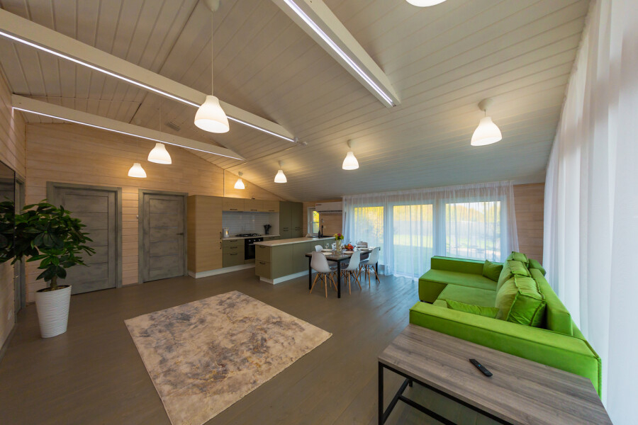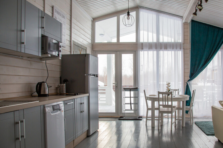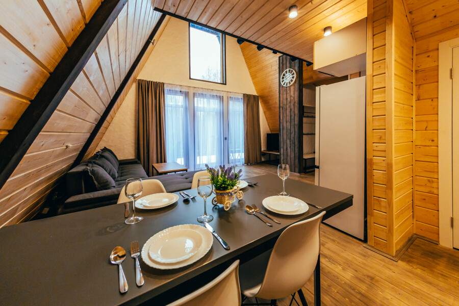 - Полностью оборудованные дома: мебель, техника и сантехника — всё для вашего комфортного проживания.