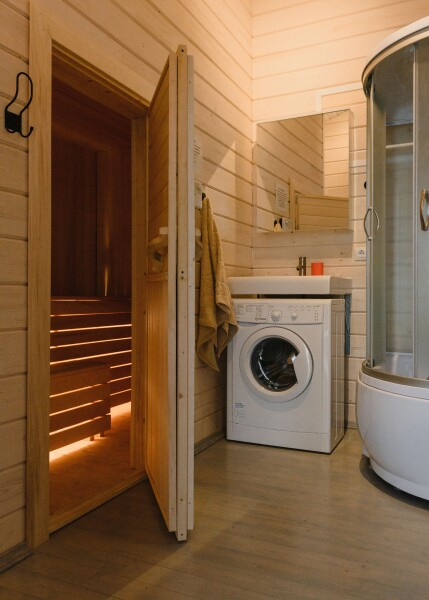 - Включена сауна в каждом коттедже — отличный способ расслабиться после активного дня.