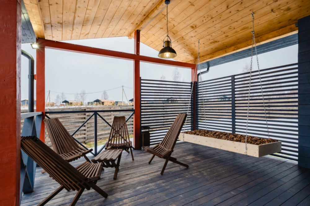 - Экстерьер: каждый дом имеет собственную открытую горячую купель под открытым небом и шезлонги для отдыха на свежем воздухе
