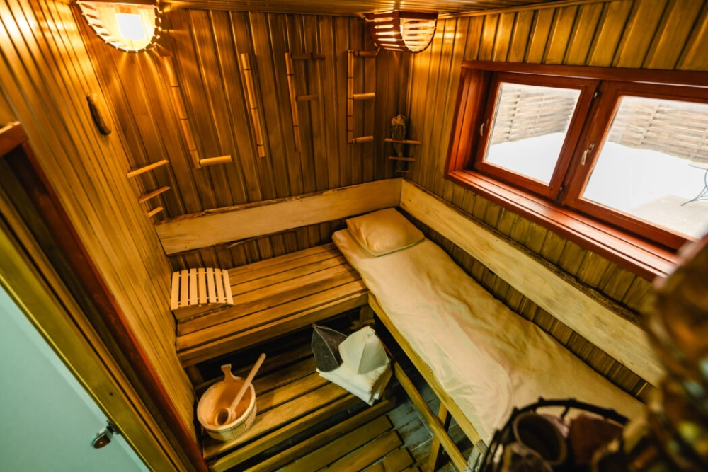 На территории есть три эксклюзивные бани . В каждой есть парилка,зона отдыха, подвесной чан, качели с шишками и зона отдыха. Стоимость сеанса 15000/3 часа . Подробности можно узнать у администратора.