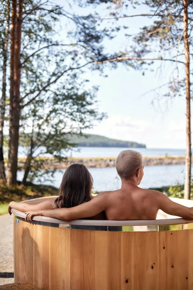 - Дровяная баня и чан на берегу озера — окунитесь в тепло и восстановите энергию