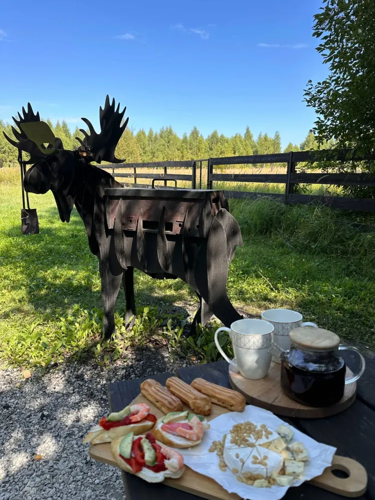 - Индивидуальные зоны барбекю у каждого дома: необычный мангал, решетка и шампуры — всё для вкусных и жарких встреч с близкими.
