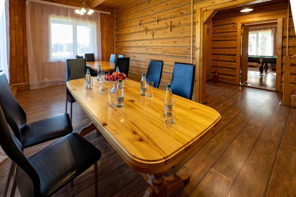 Основное меню включает в себя традиционные блюда русской и европейской кухни, приготовленные из свежих местных продуктов и дикого мяса. Салаты, закуски, супы и основные блюда идеально подойдут как для быстрого перекуса, так и для полноценного завтрака обеда или ужина. Чтобы расслабиться после активного дня – загляните в барную карту, где вашего заказа ожидают вкуснейшие травяные чаи, ароматный кофе, морсы из свежих ягод и другие напитки. А сезонные предложения приятно удивят разнообразием и новыми вкусами.
