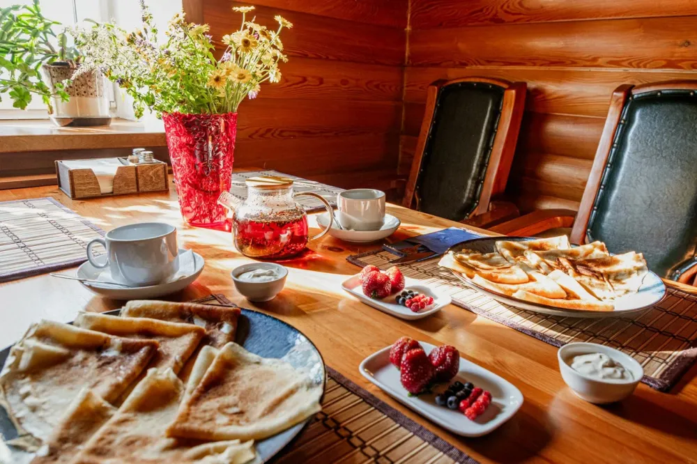 Приглашаем наших гостей посетить ресторан на живописном берегу реки Молога. Основное меню включает в себя традиционные блюда русской и европейской кухни, приготовленные из свежих местных продуктов и дикого мяса. Салаты, закуски, супы и основные блюда идеально подойдут как для быстрого перекуса, так и для полноценного завтрака обеда или ужина. Чтобы расслабиться после активного дня – загляните в барную карту, где вашего заказа ожидают вкуснейшие травяные чаи, ароматный кофе, морсы из свежих ягод и другие напитки. А сезонные предложения приятно удивят разнообразием и новыми вкусами.