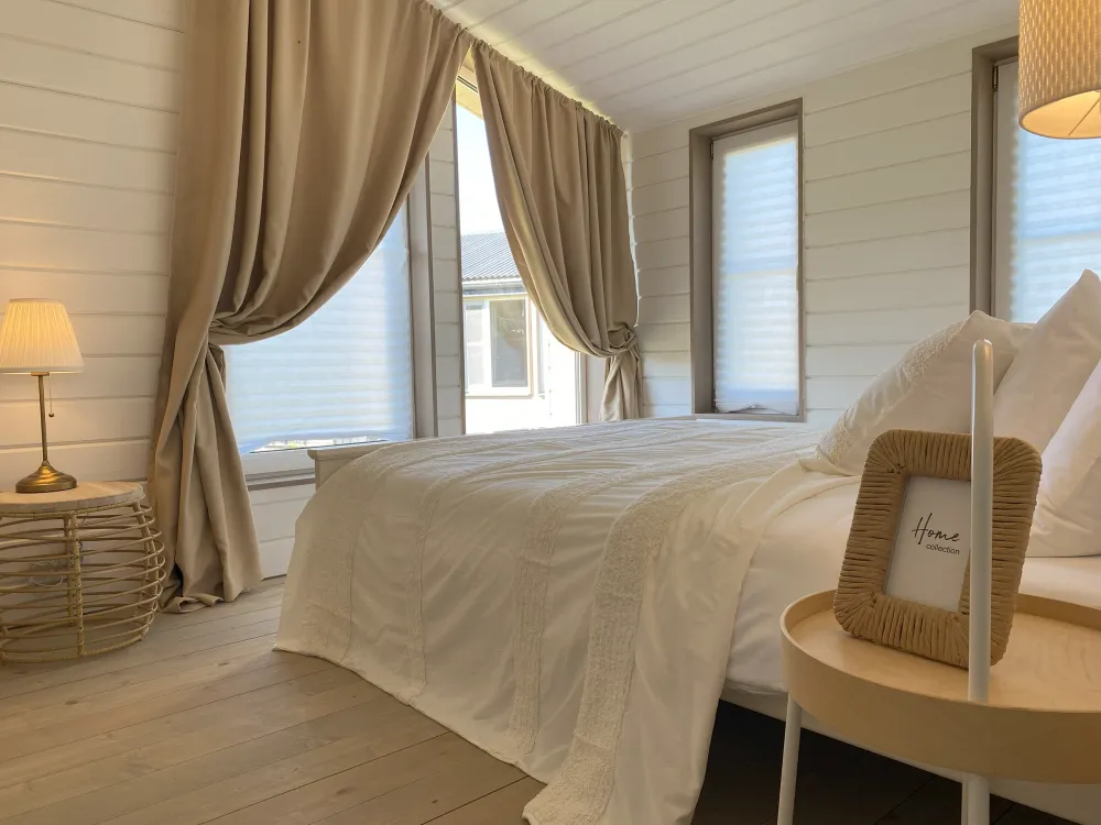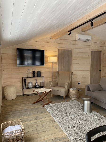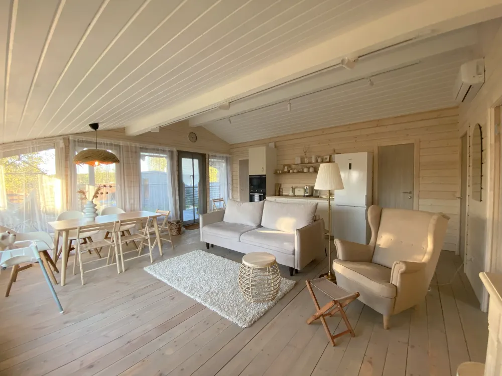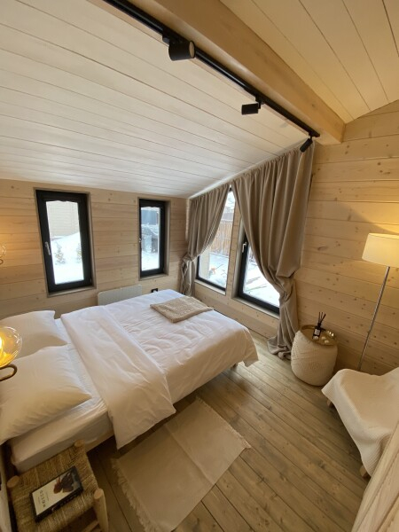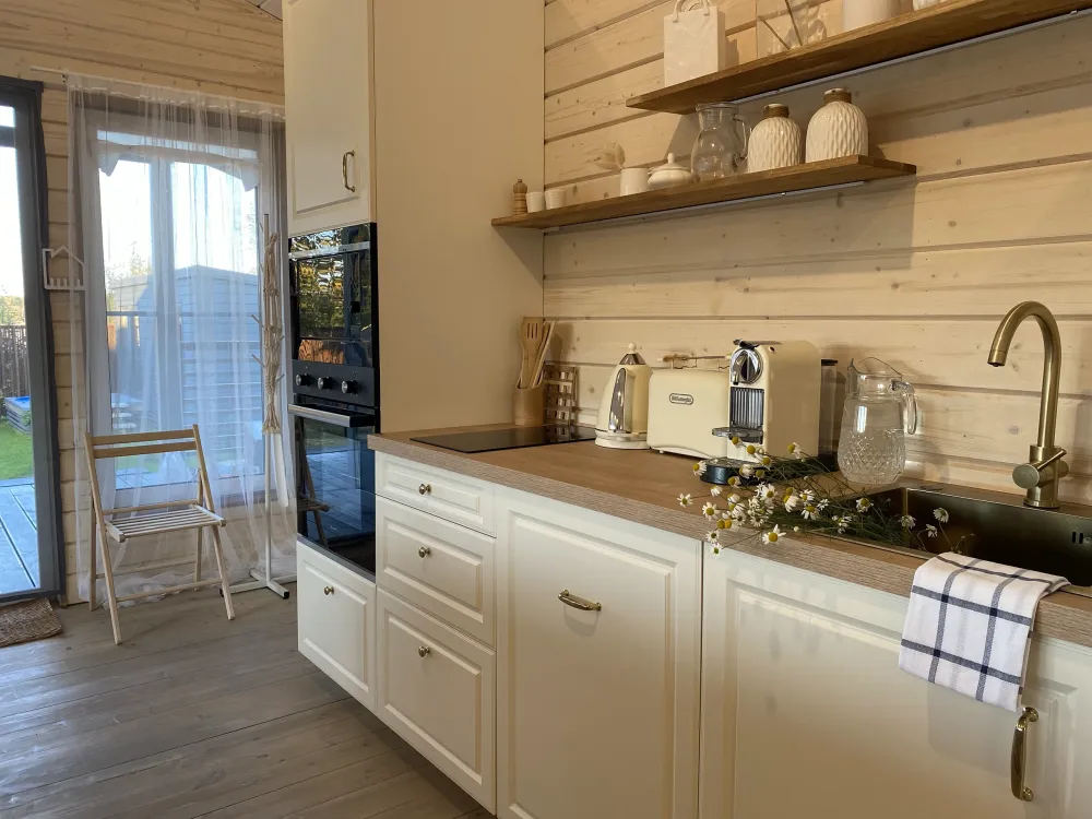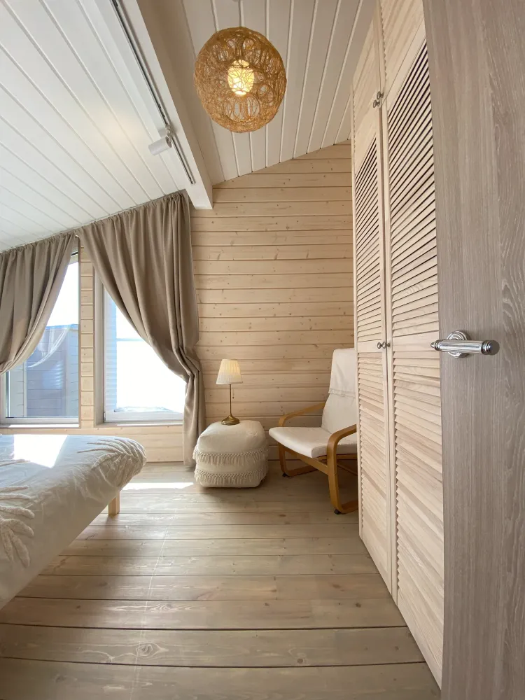 Дома вместимостью до 8 гостей — всё необходимое для комфортного проживания: мебель, техника, постельное бельё.