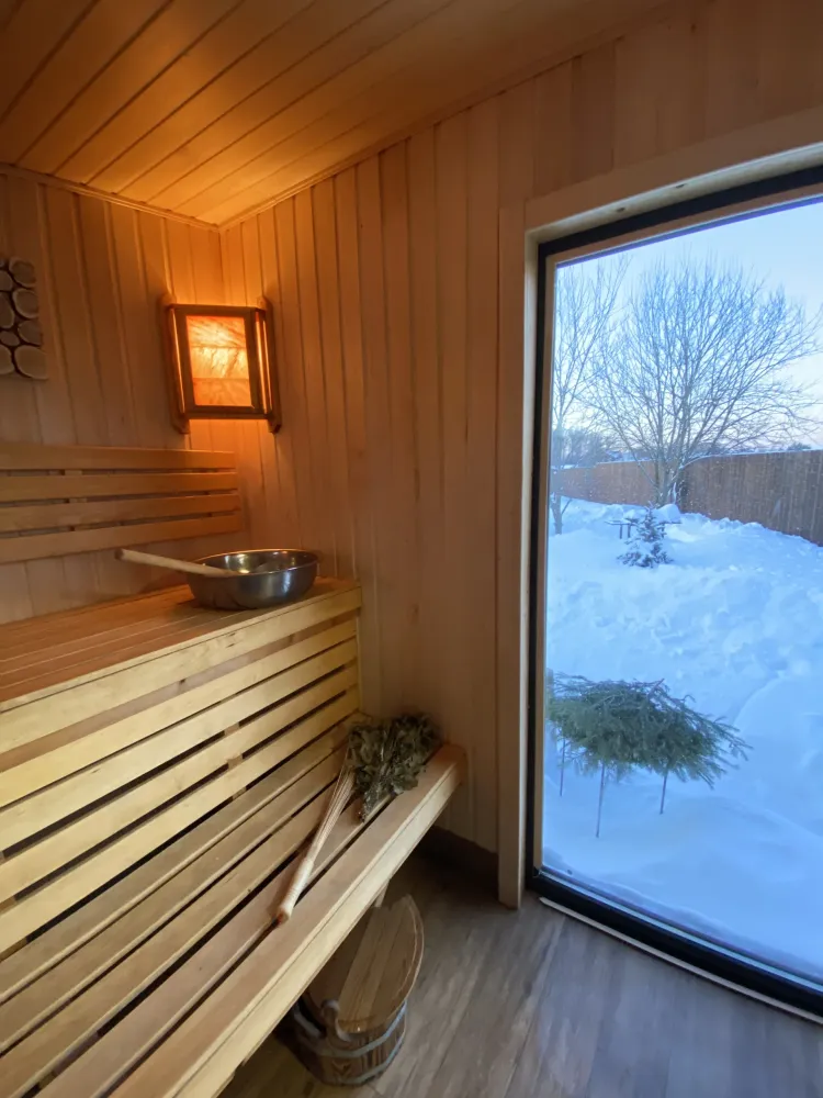 Летом – зеленая листва за окном, зимой – искрящийся снег, весной – распускающиеся цветы, осенью – буйство красок… В любое время года наша баня на дровах с панорамными окнами подарит вам незабываемые впечатления. А ледяная купель и чан с травами дополнят эту картину и сделают ваш отдых по-настоящему полноценным. Стоимость бани 6500р/3 часа .Холодная купель +1000р.