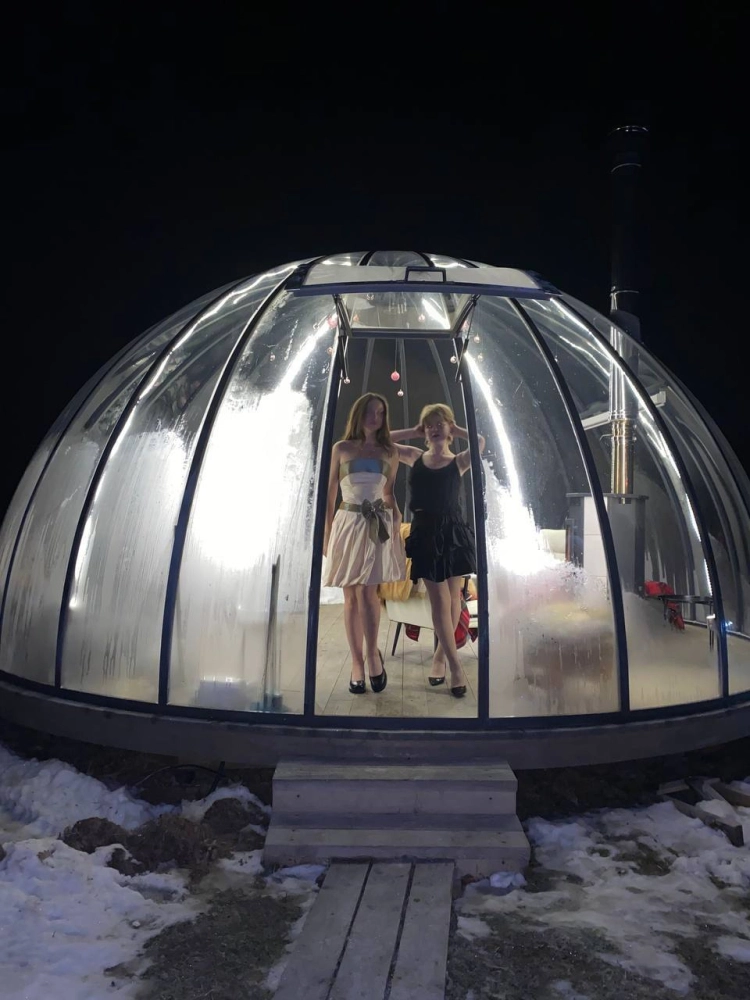На территории есть геокупол с проектором и печью-камином