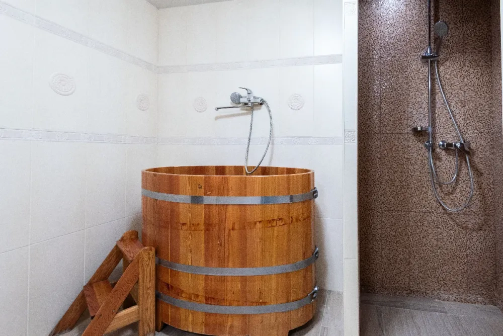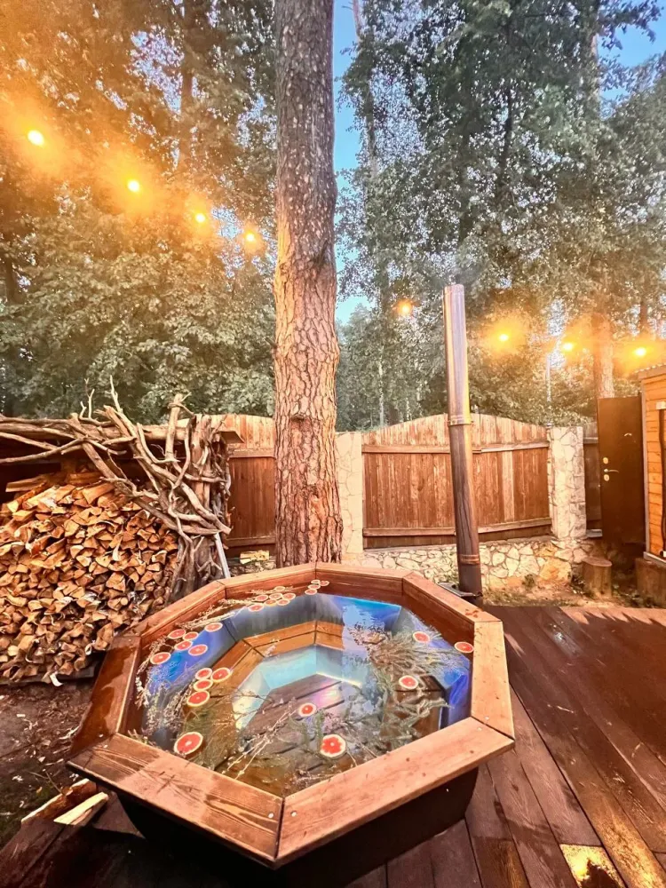- Баня на дровах и горячий чан — согревайтесь и расслабляйтесь после насыщенного дня.