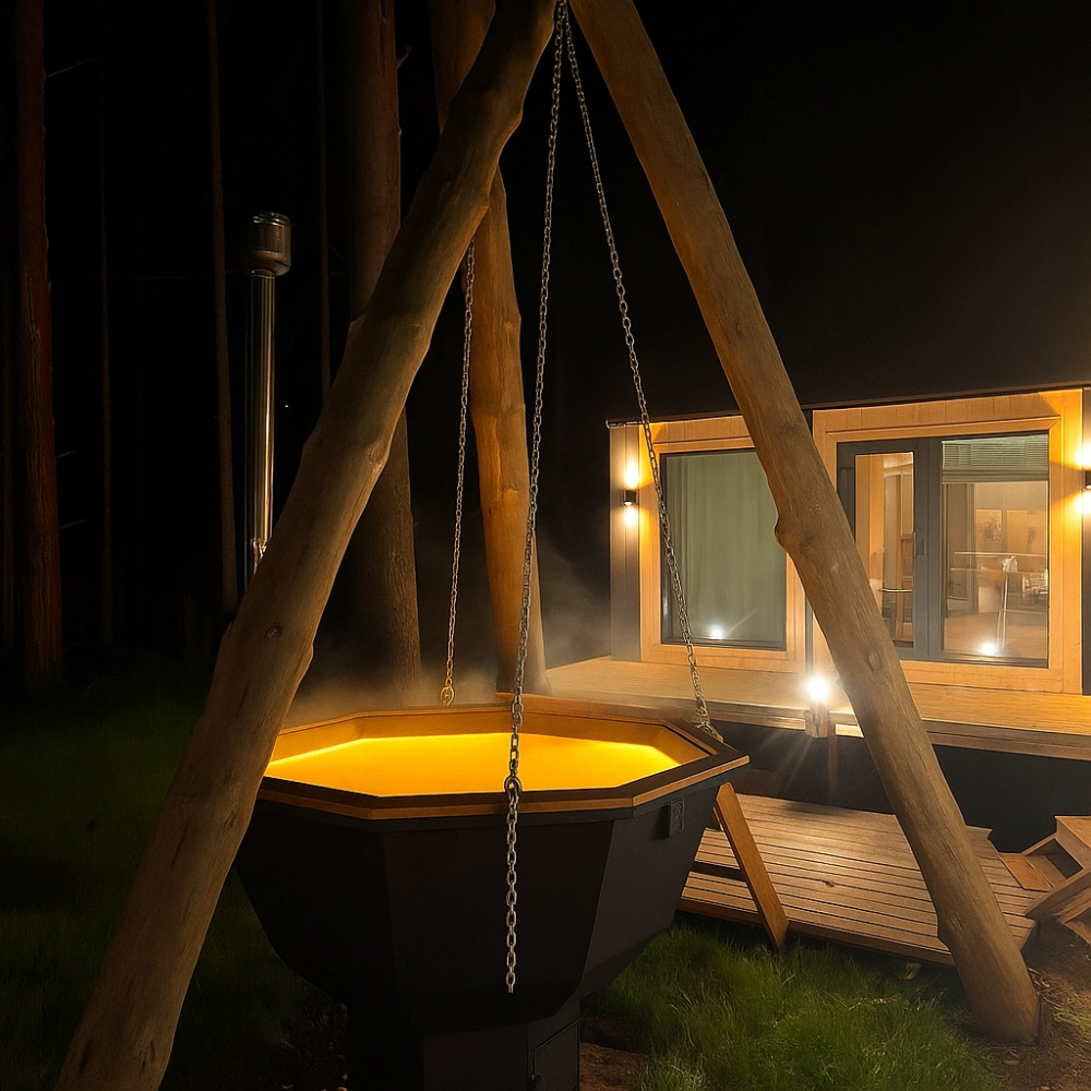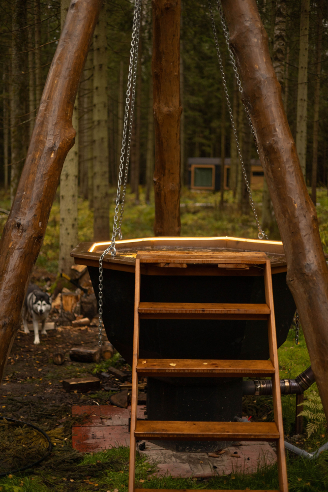 - На территории — горячий чан, где можно расслабиться в любое время
