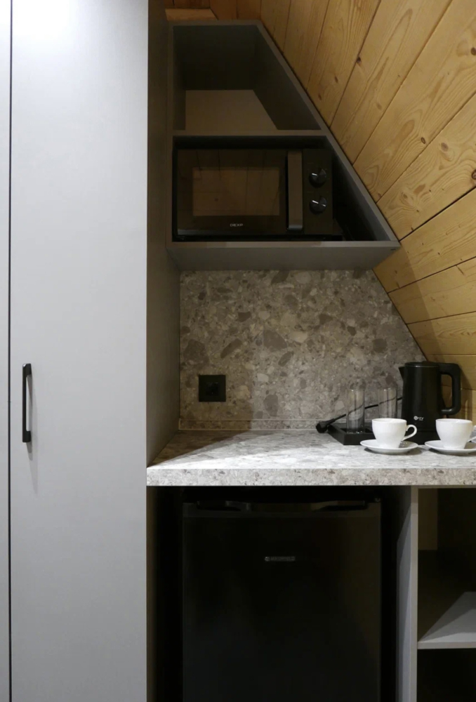 Наш эко-отель сочетает современный дизайн с заботой о природе. Каждый дом оборудован всей необходимой мебелью и техникой, создавая уютную атмосферу для комфортного проживания.