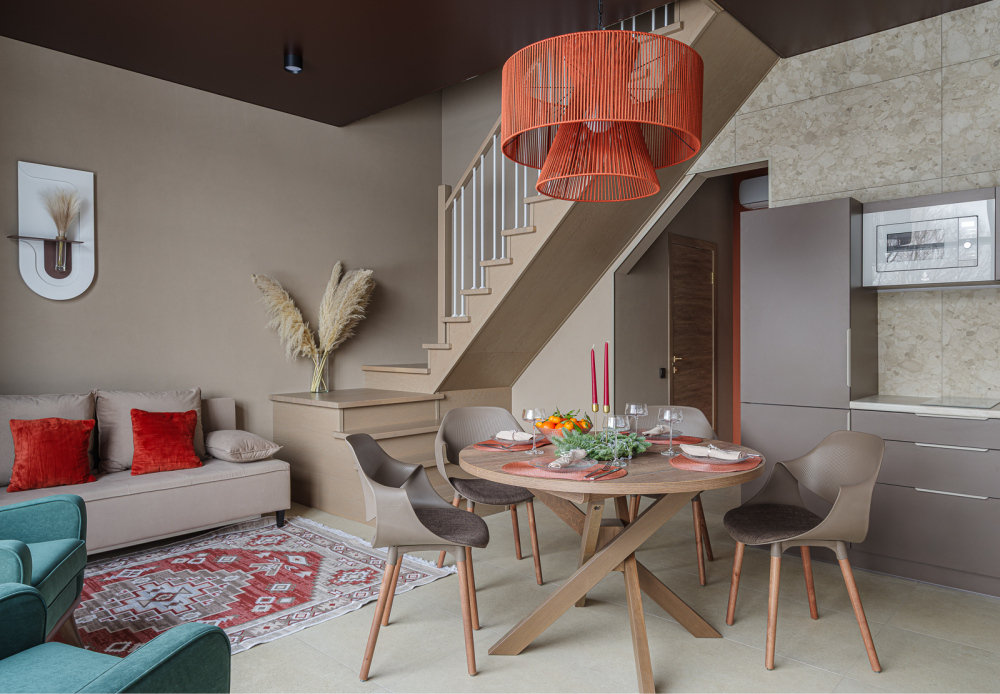 Комфорт: 8 спальных мест (2 спальни + гостиная), современная кухня со всей техникой, включая посудомойку.