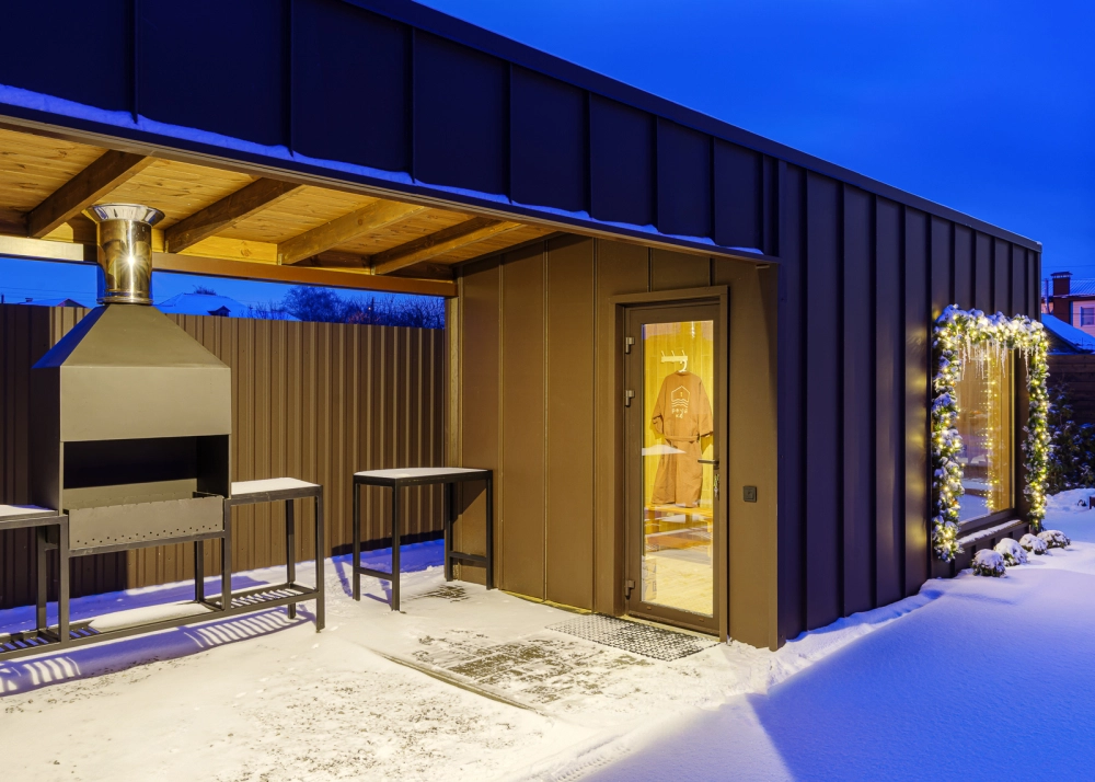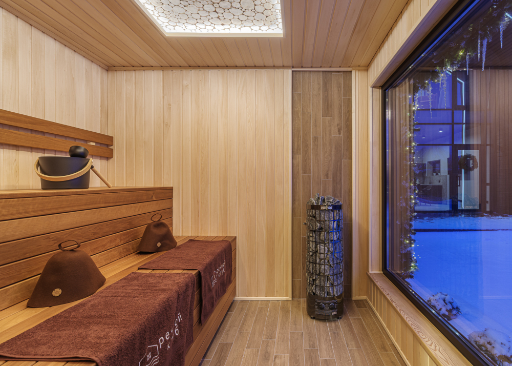 Русская баня: панорамное остекление и мягкий пар (входит в стоимость).