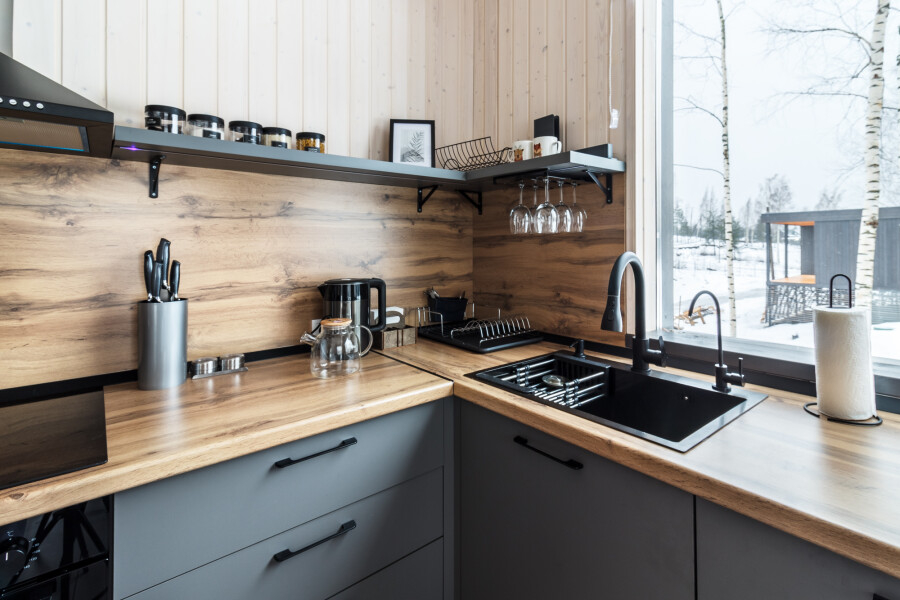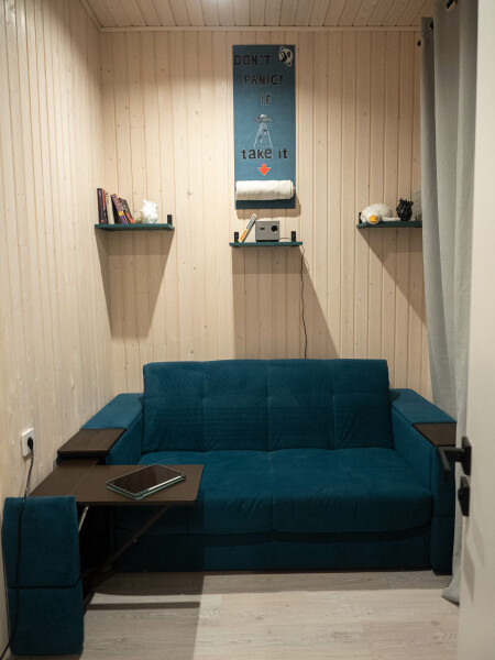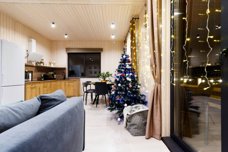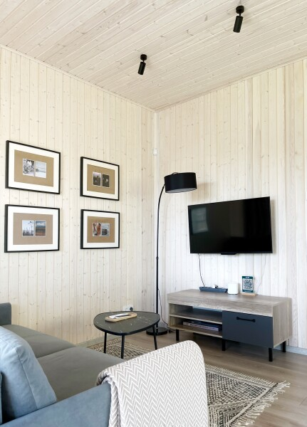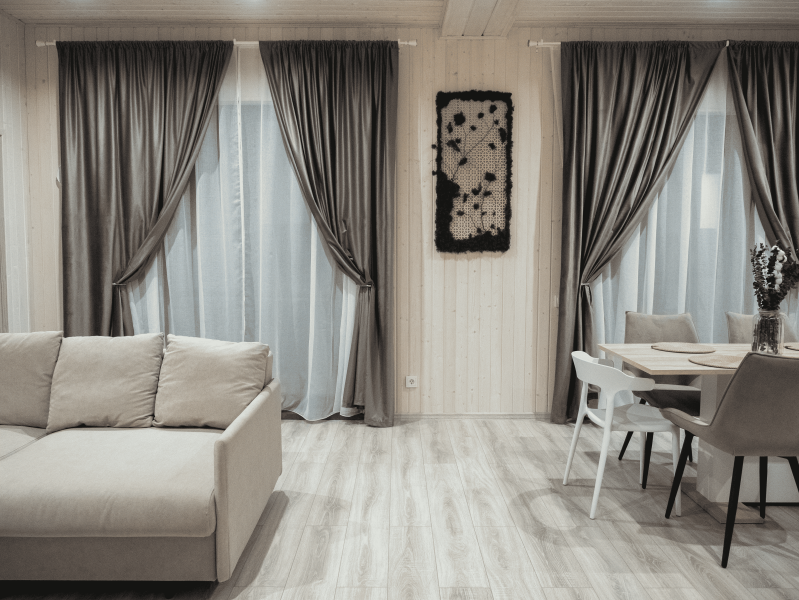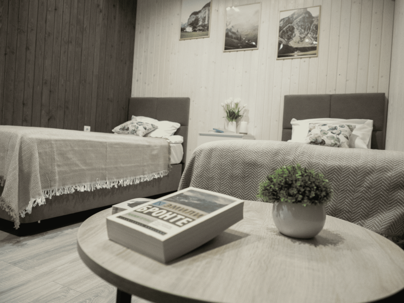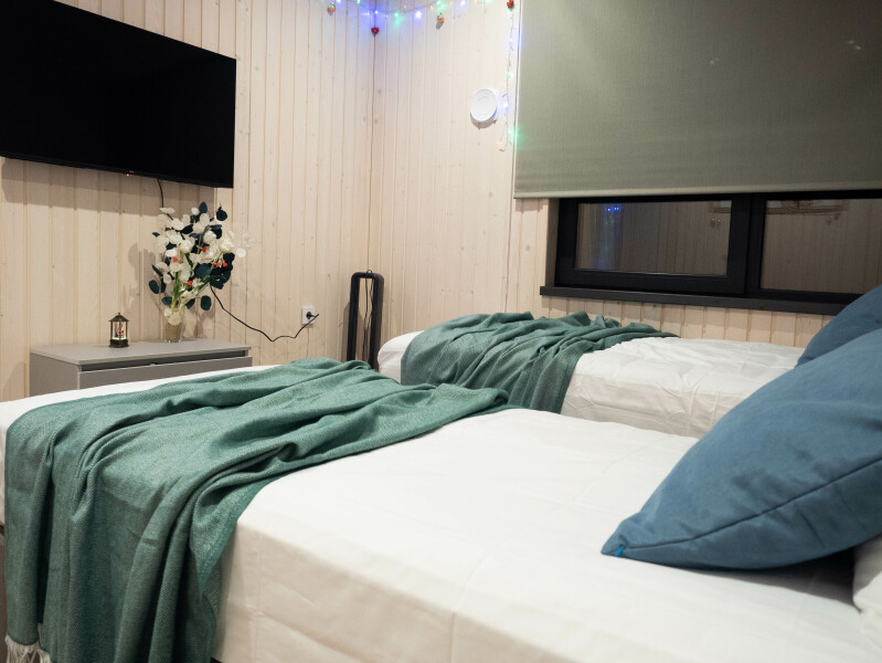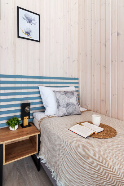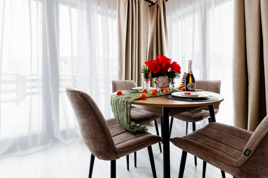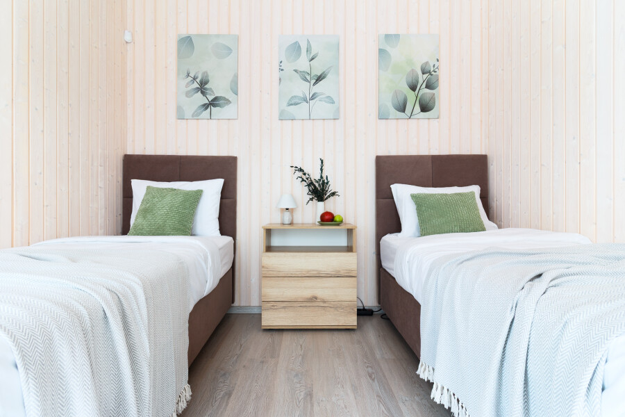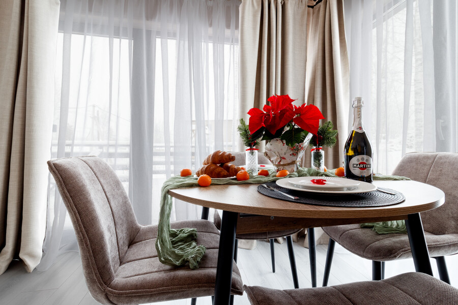 - Просторные кухни-гостиные: комфортные для больших компаний из 4+ человек, оснащены всем необходимым — плитой, духовкой, холодильником и посудой.