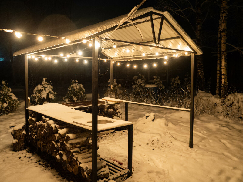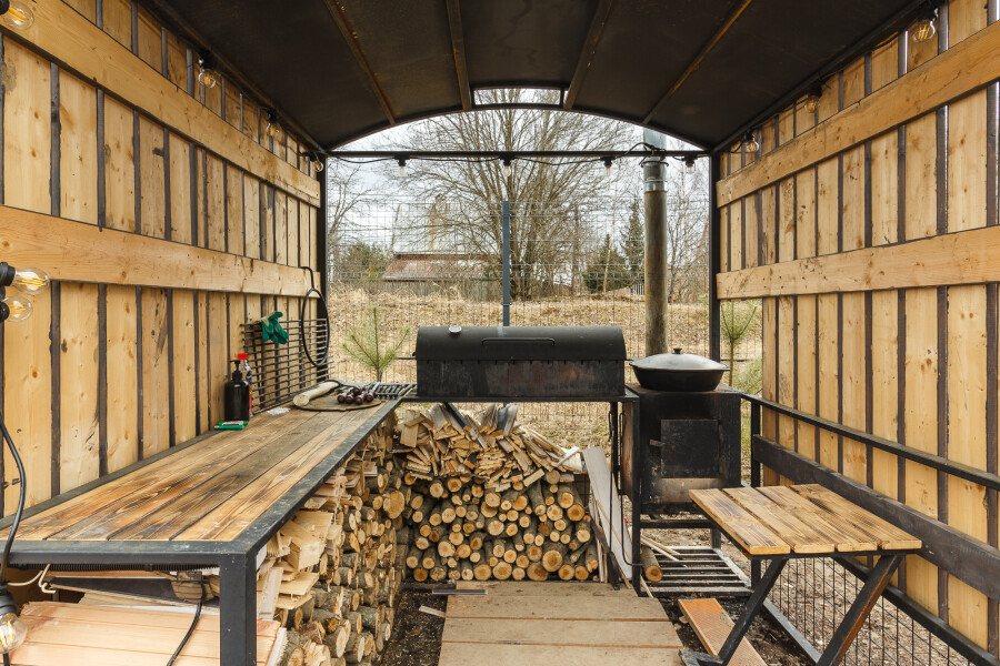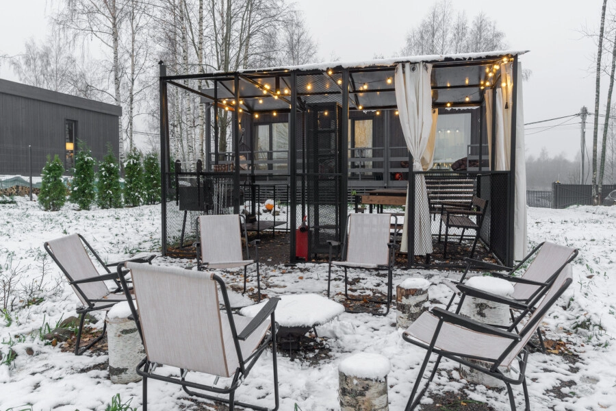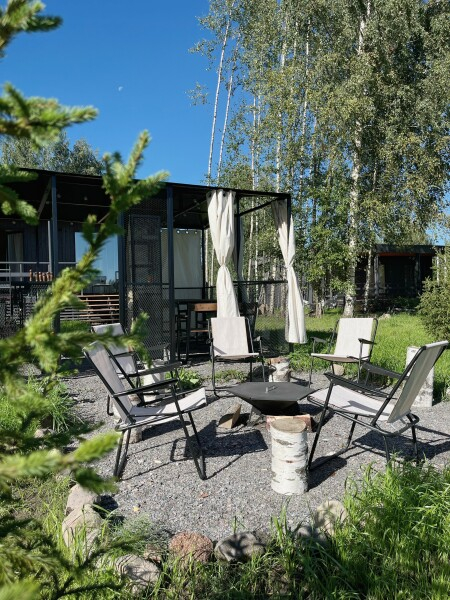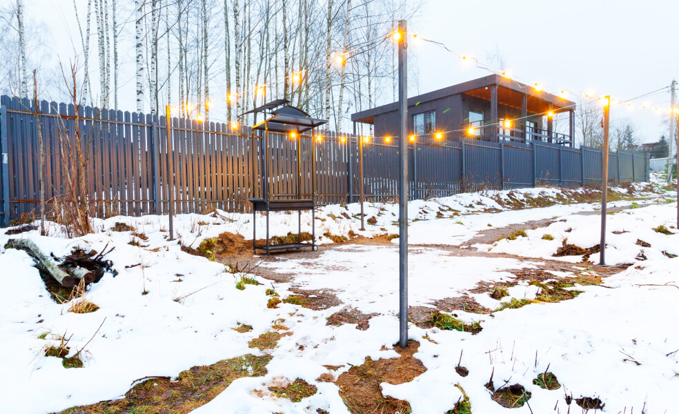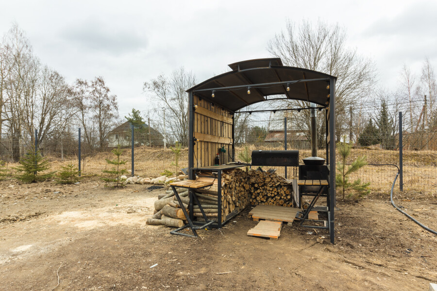 - Задний двор: оборудован беседкой, мангалом, с видом на живописные леса Токсово — идеальное место для романтических вечеров или семейных посиделок.