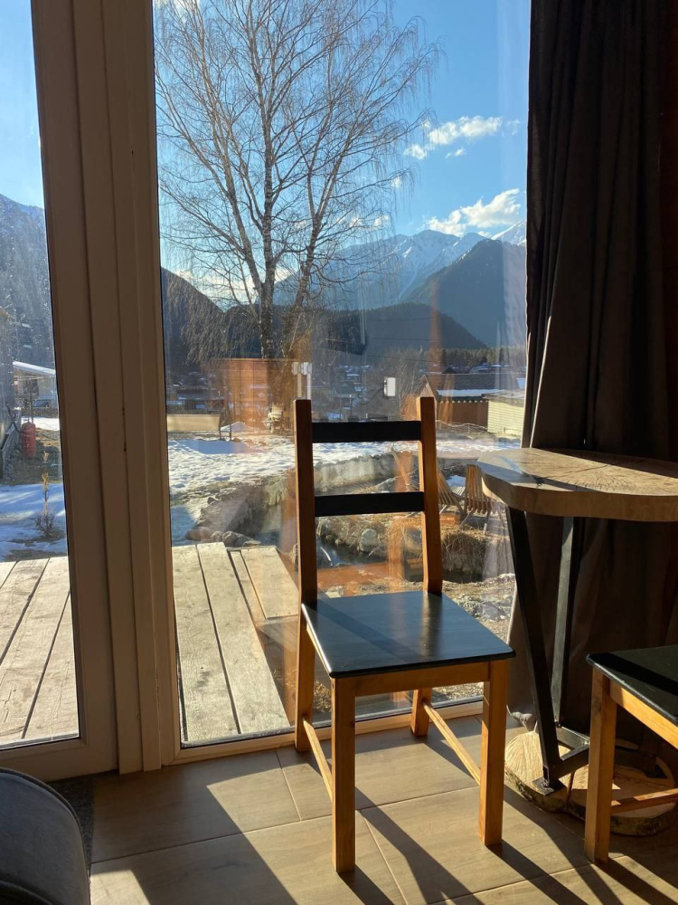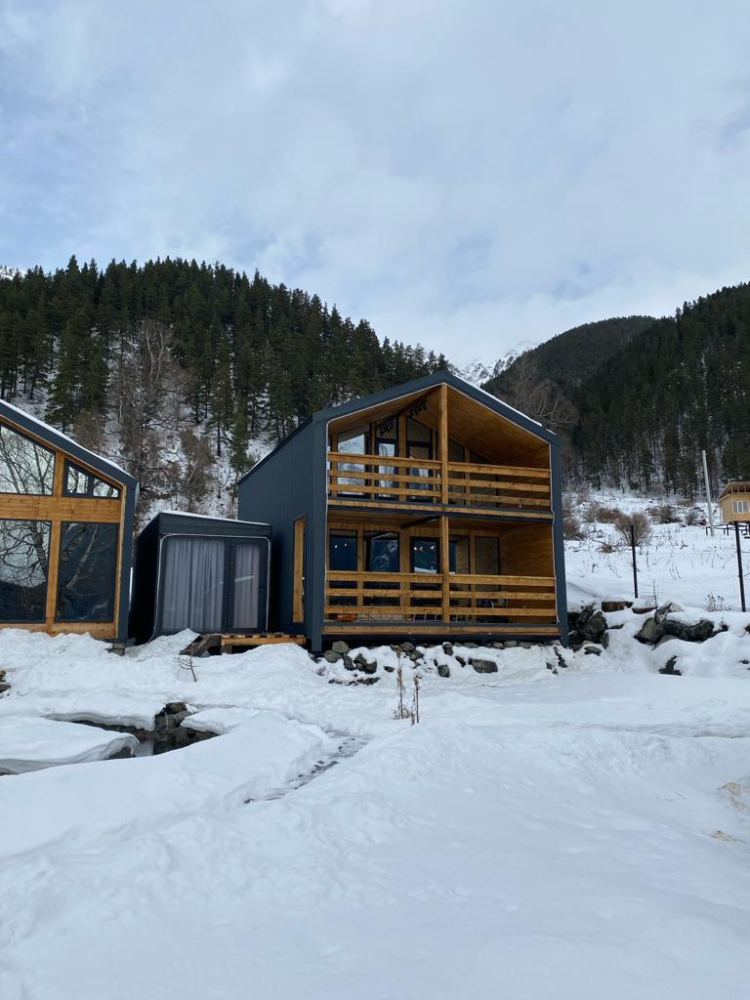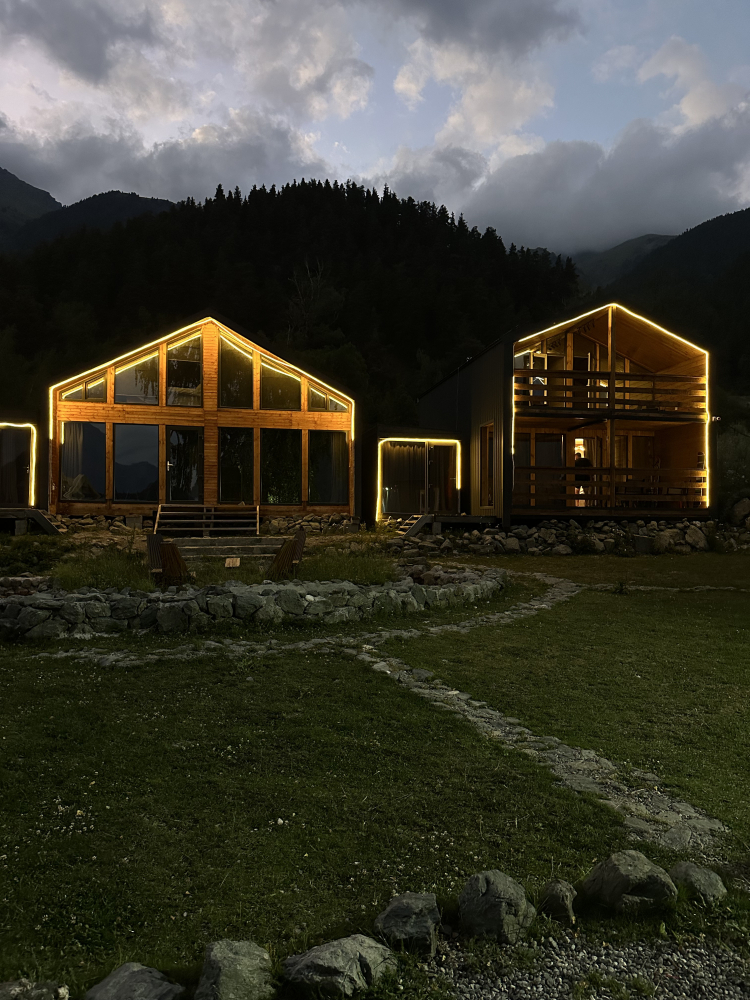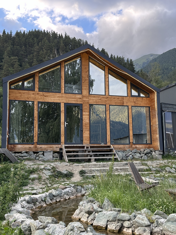 Наши домики расположены выше других баз, что обеспечивает непрерывный потрясающий вид на горы: вы наслаждаетесь красотой природы без перекрытия со стороны соседних построек.
