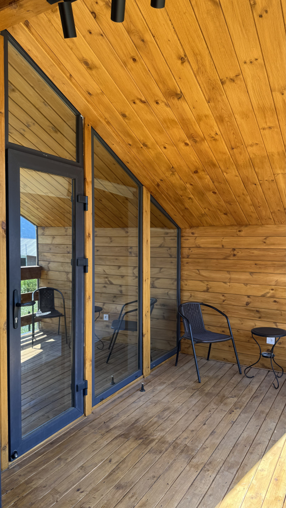 Мы создали мебель вручную с дизайнерским подходом, а часть предметов сделана нашими мастерами из природных материалов — это делает атмосферу еще более уютной и аутентичной. Гостеприимство и поддержка