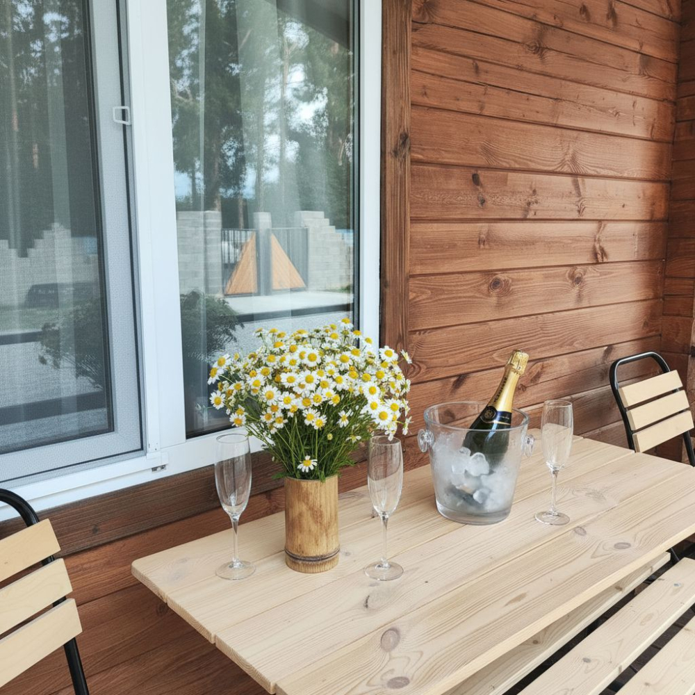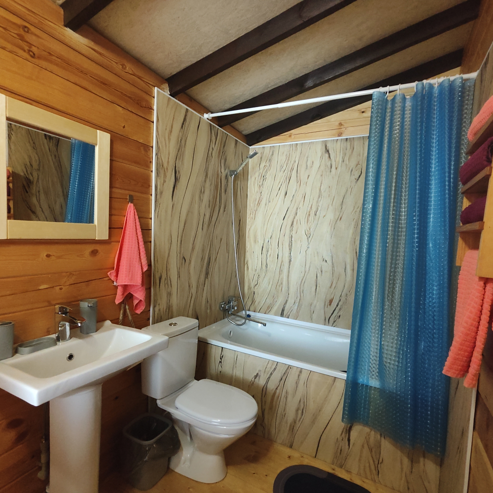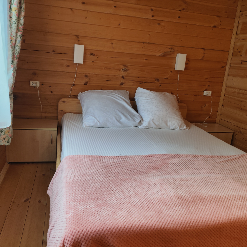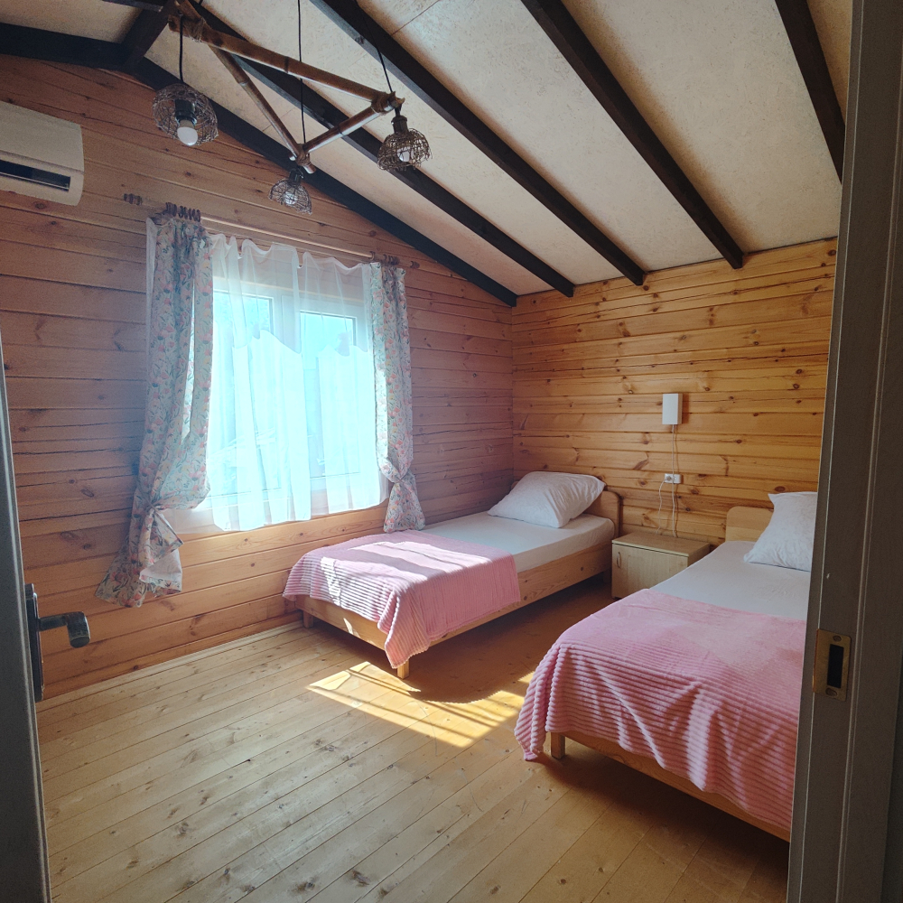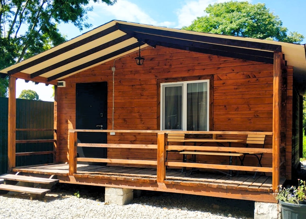 Каждый гость найдет здесь достойное жилище — светлые и удобные деревянные домики, выполненные с любовью и теплотой истинных мастеров, способные вместить дружную компанию до шести человек. Санузел, телевидение, кондиционер, холодильник, бесплатный Wi-Fi, электрический чайник и даже фен ждут вас внутри каждого домика, создавая полную гармонию удобства и комфорта.