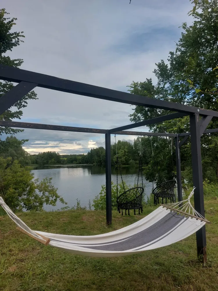 • На территории расположены зона для барбекю, качели, гамак — создадут атмосферу отдыха и релакса.