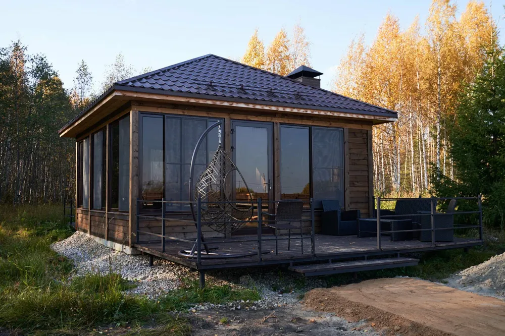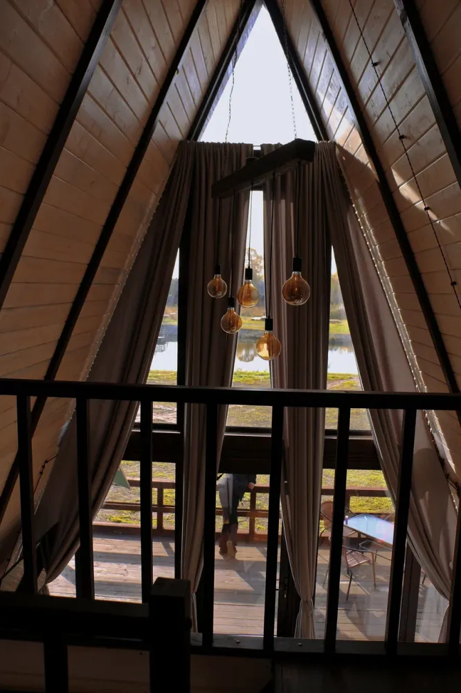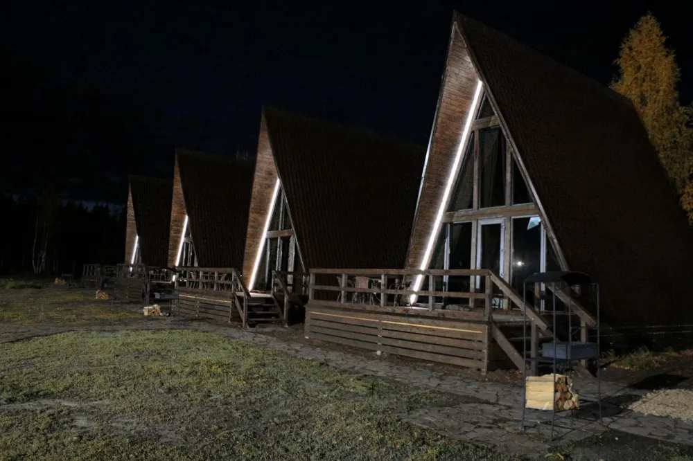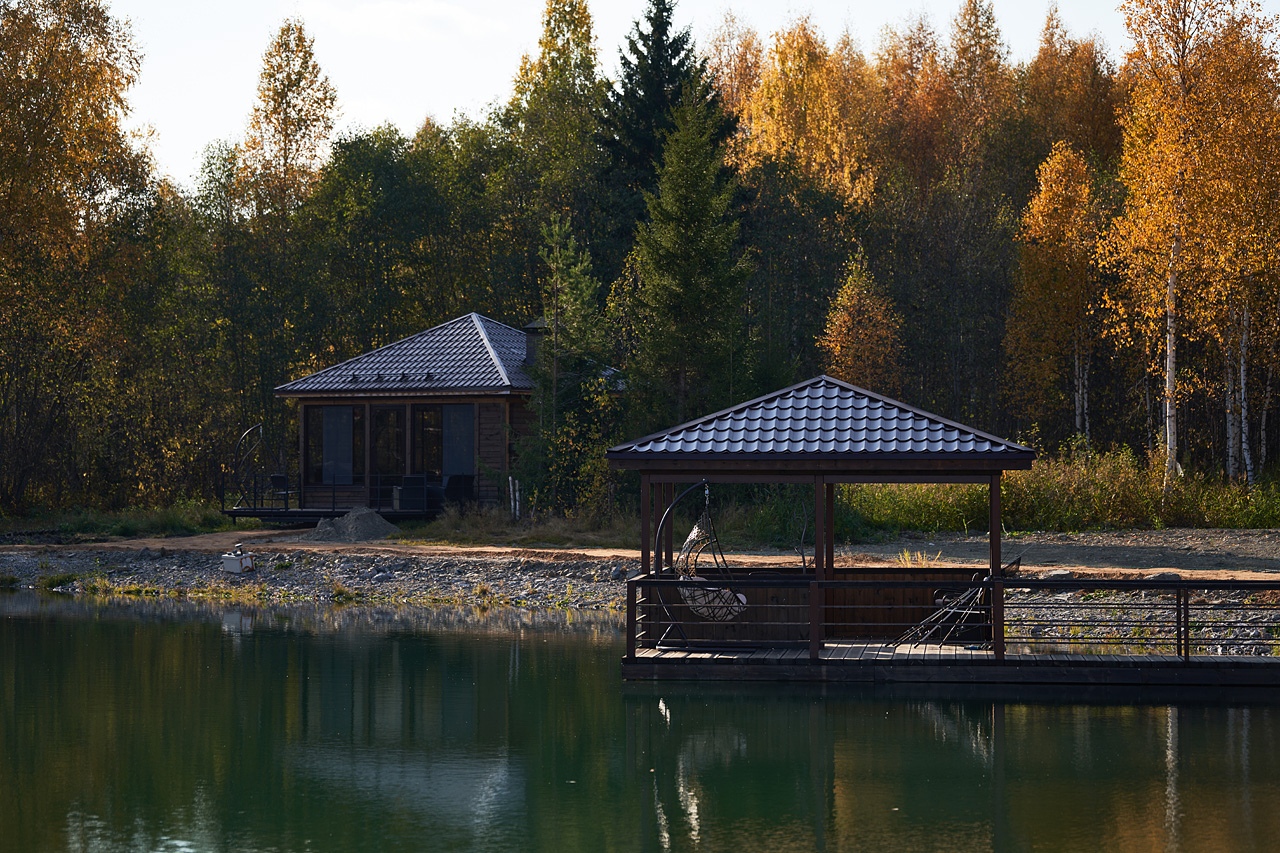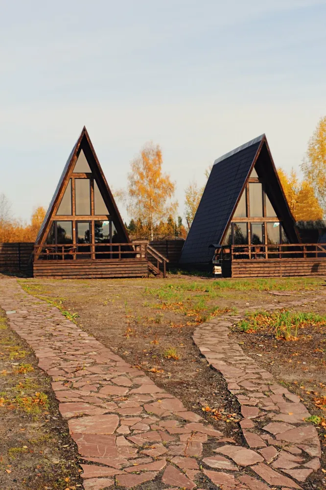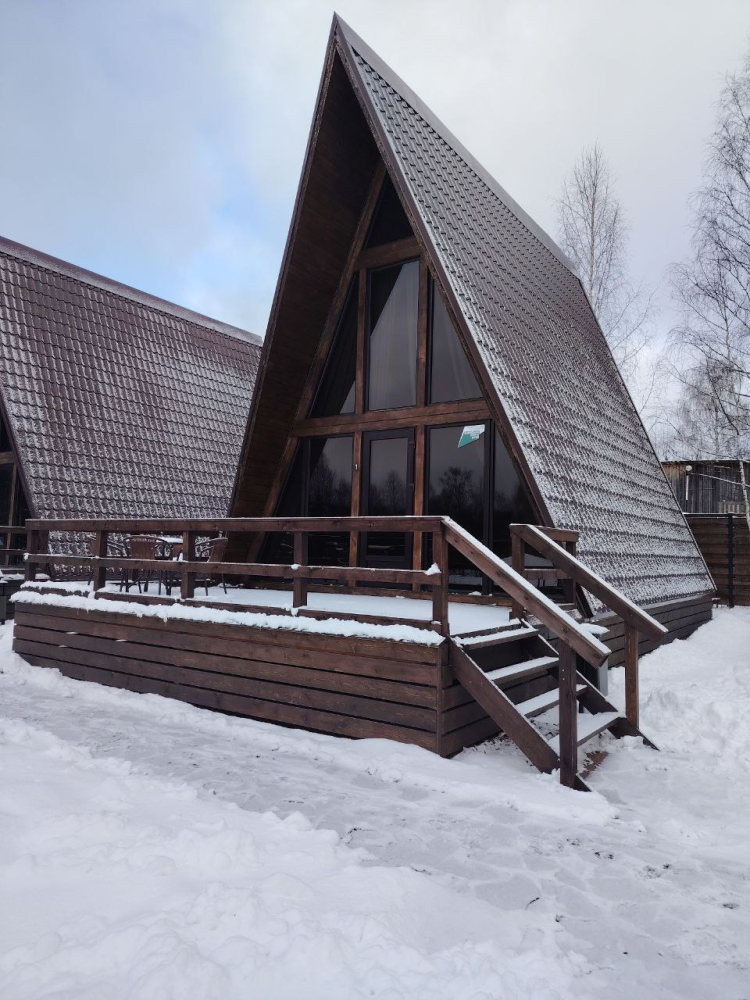 A-frame домики находятся на территории рябинского пруда в поселке Рябинино