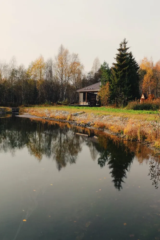 На территории глэмпинга расположен живописный искусственный водоём, специально оборудованный для разведения форели. Этот пруд — не просто декоративный элемент ландшафта, а полноценная аквакультурная зона, где создаются оптимальные условия для роста и развития ценной рыбы.