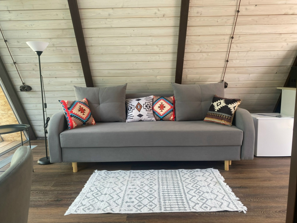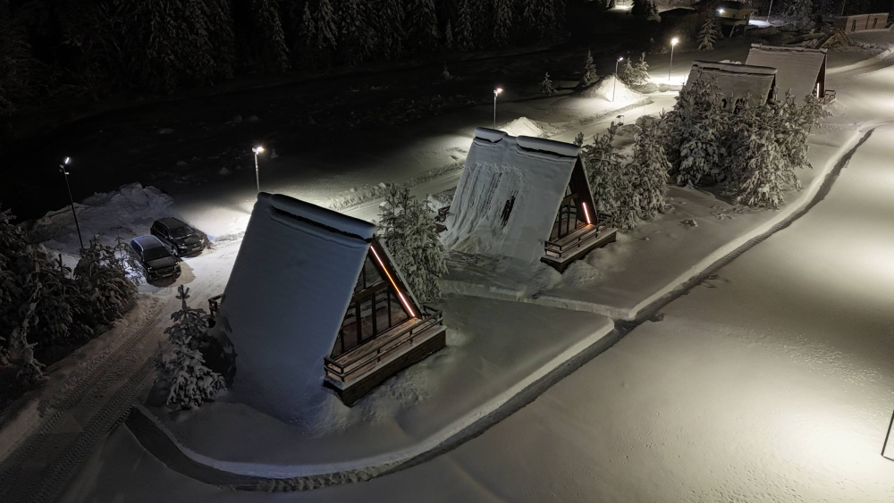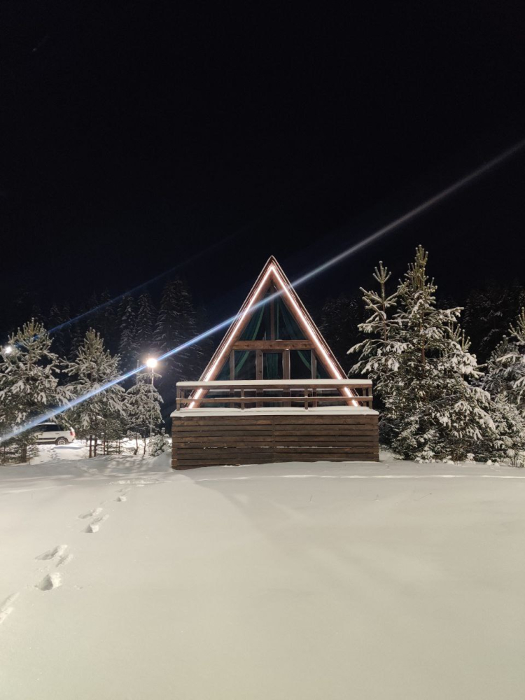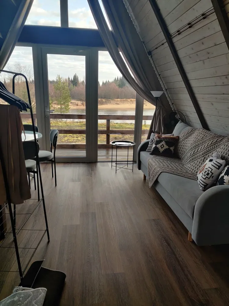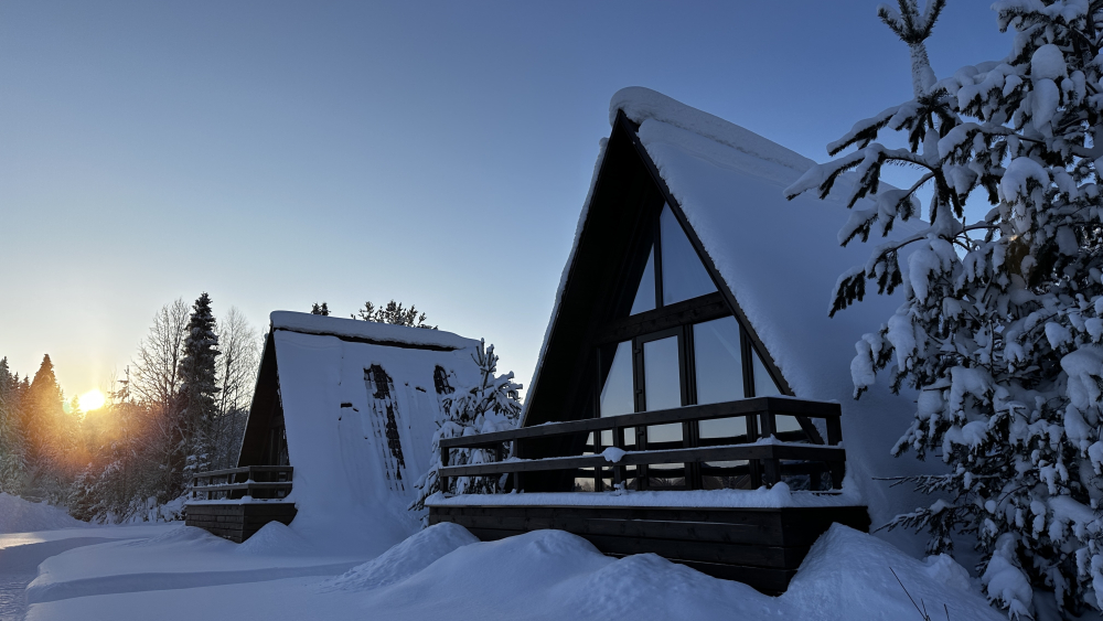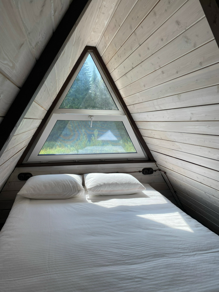 - A-frame домики. На территории расположены 4 домика, каждый из которых рассчитан на 4 человека.