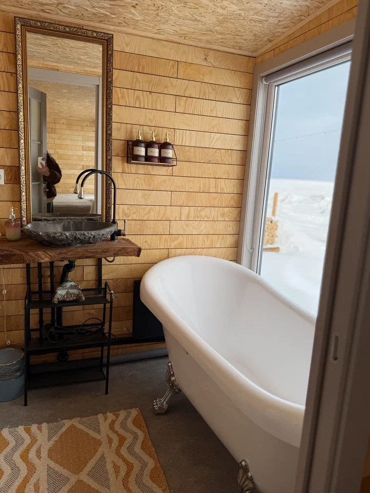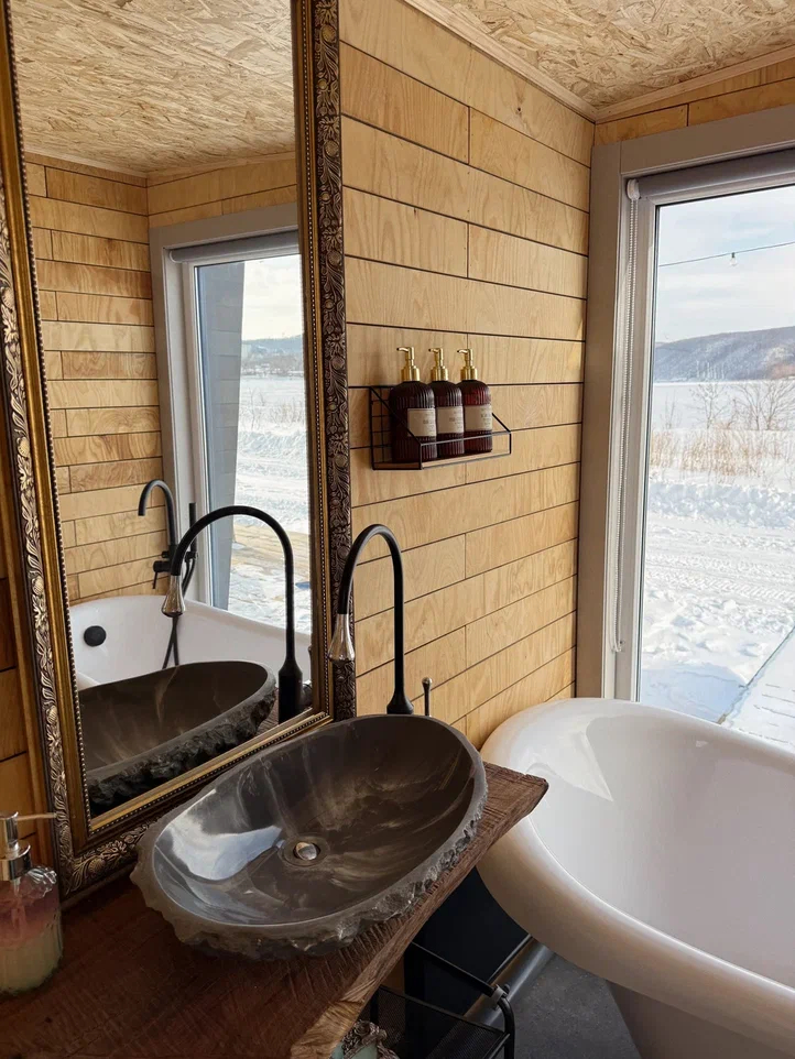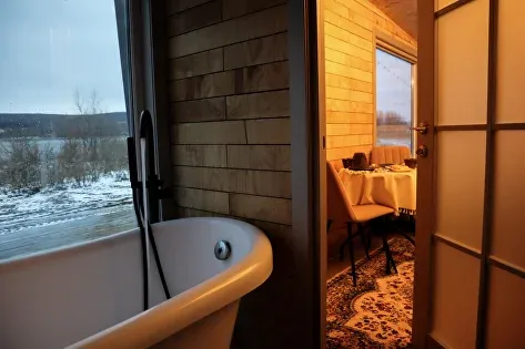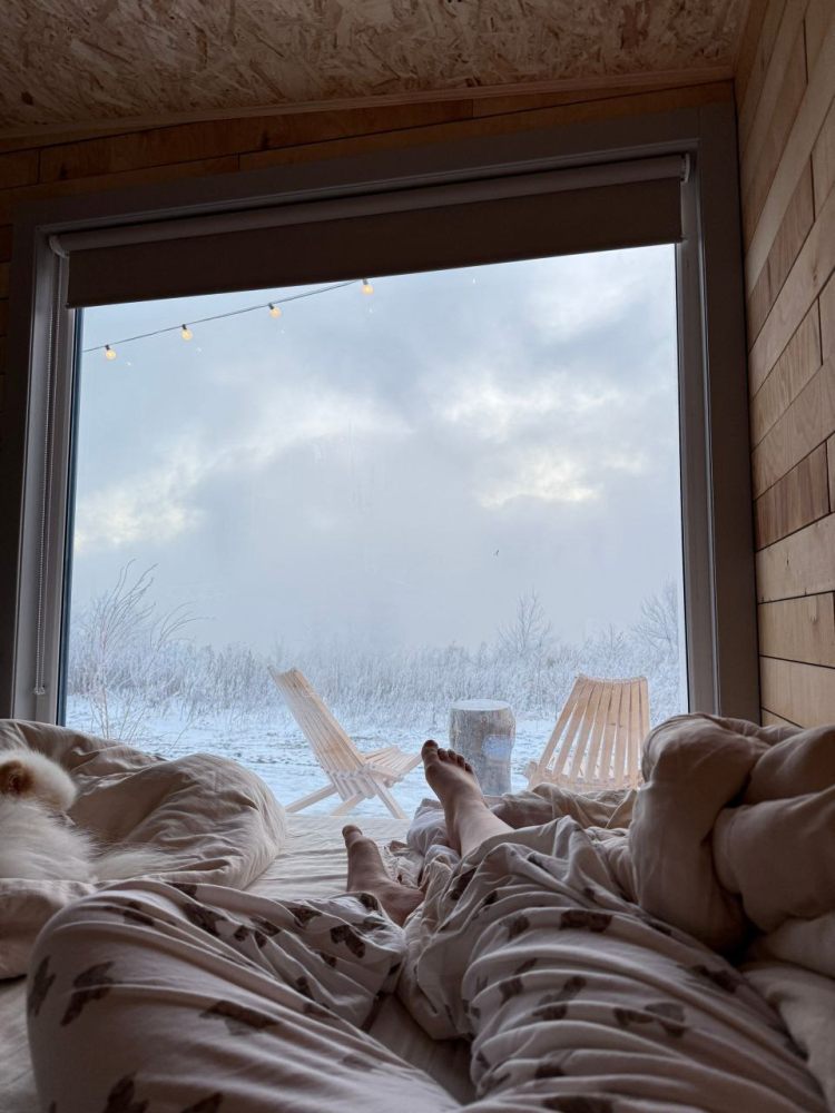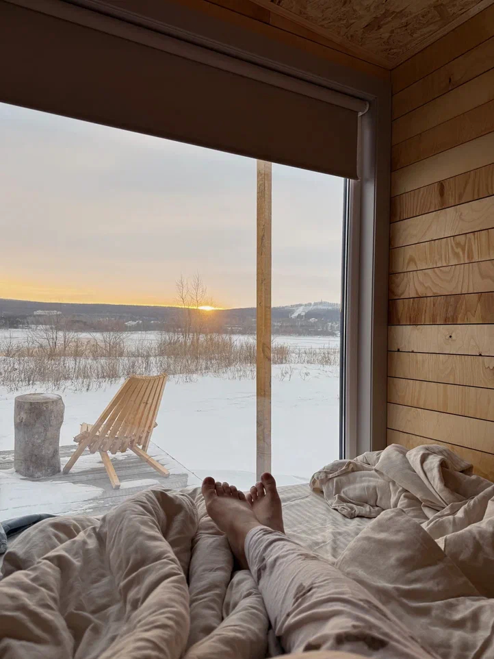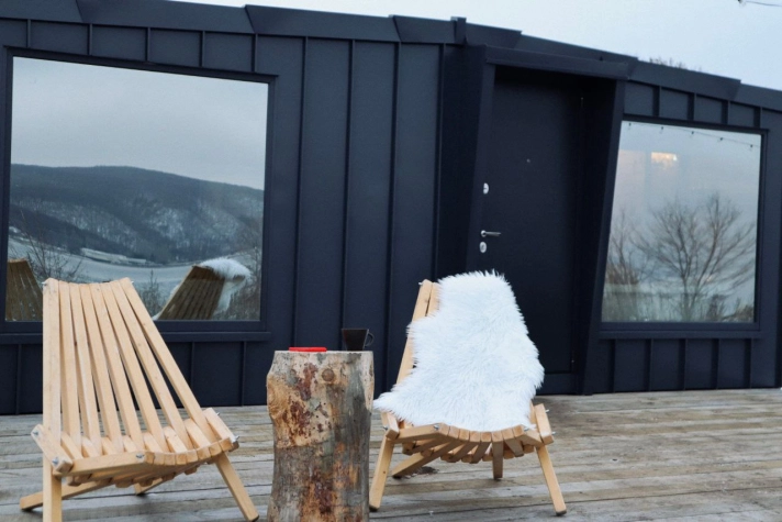 - Внутри домиков царит тепло и уют, что делает их идеальным местом для зимнего отдыха.