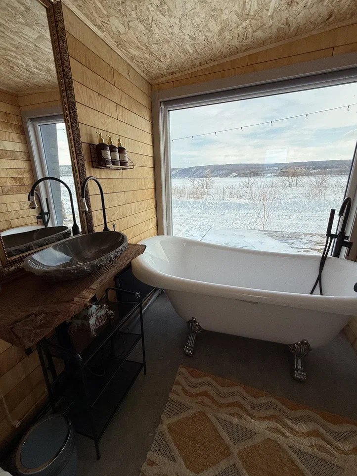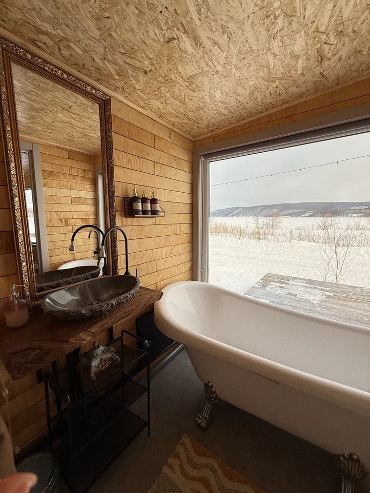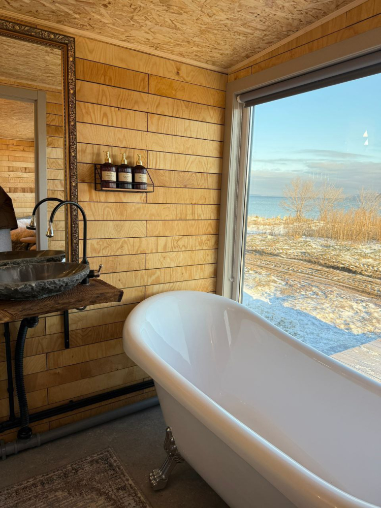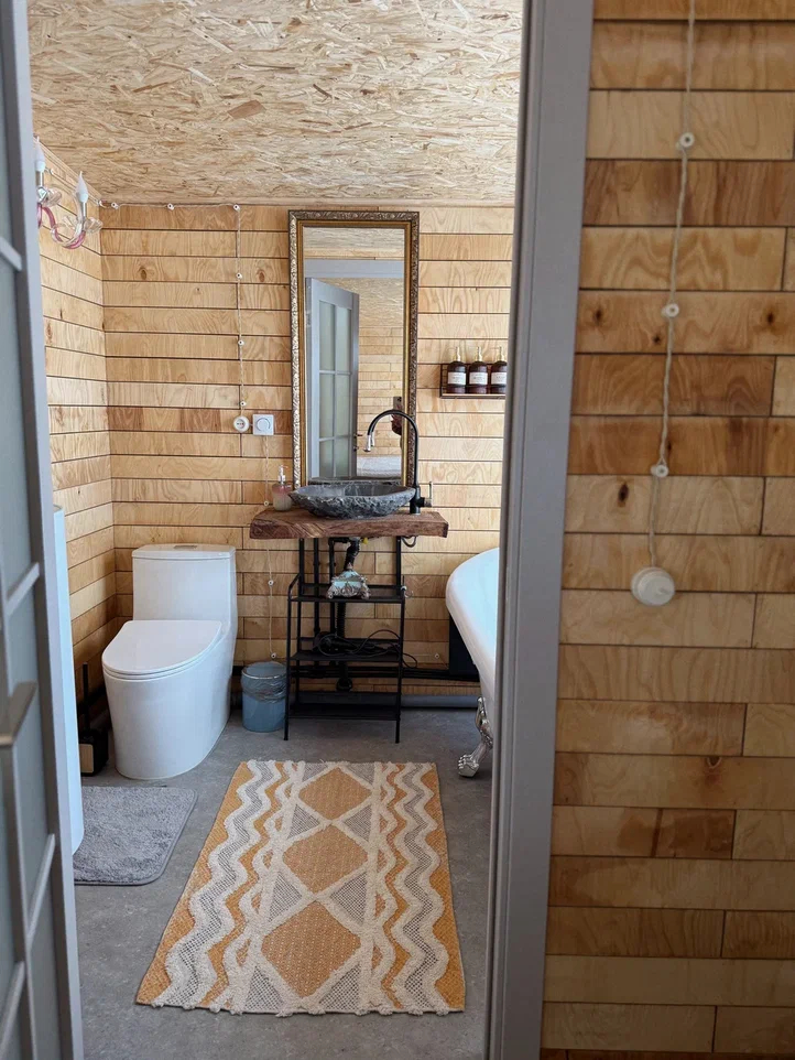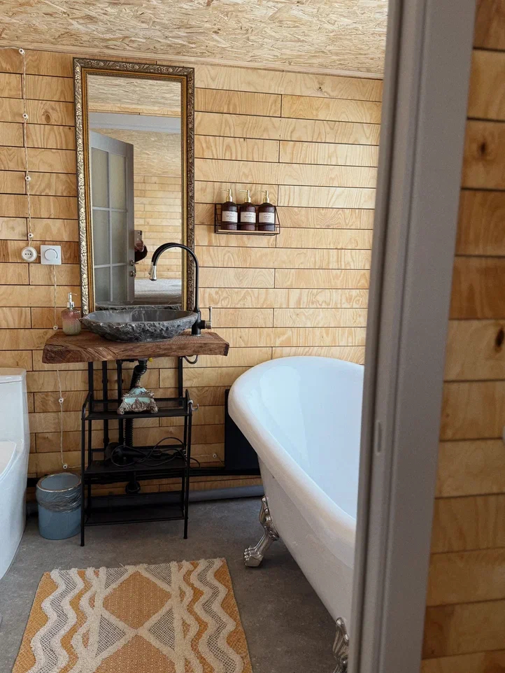 - Санузел с ванной на ножках – комфорт и удобство после прогулок и активного отдыха.