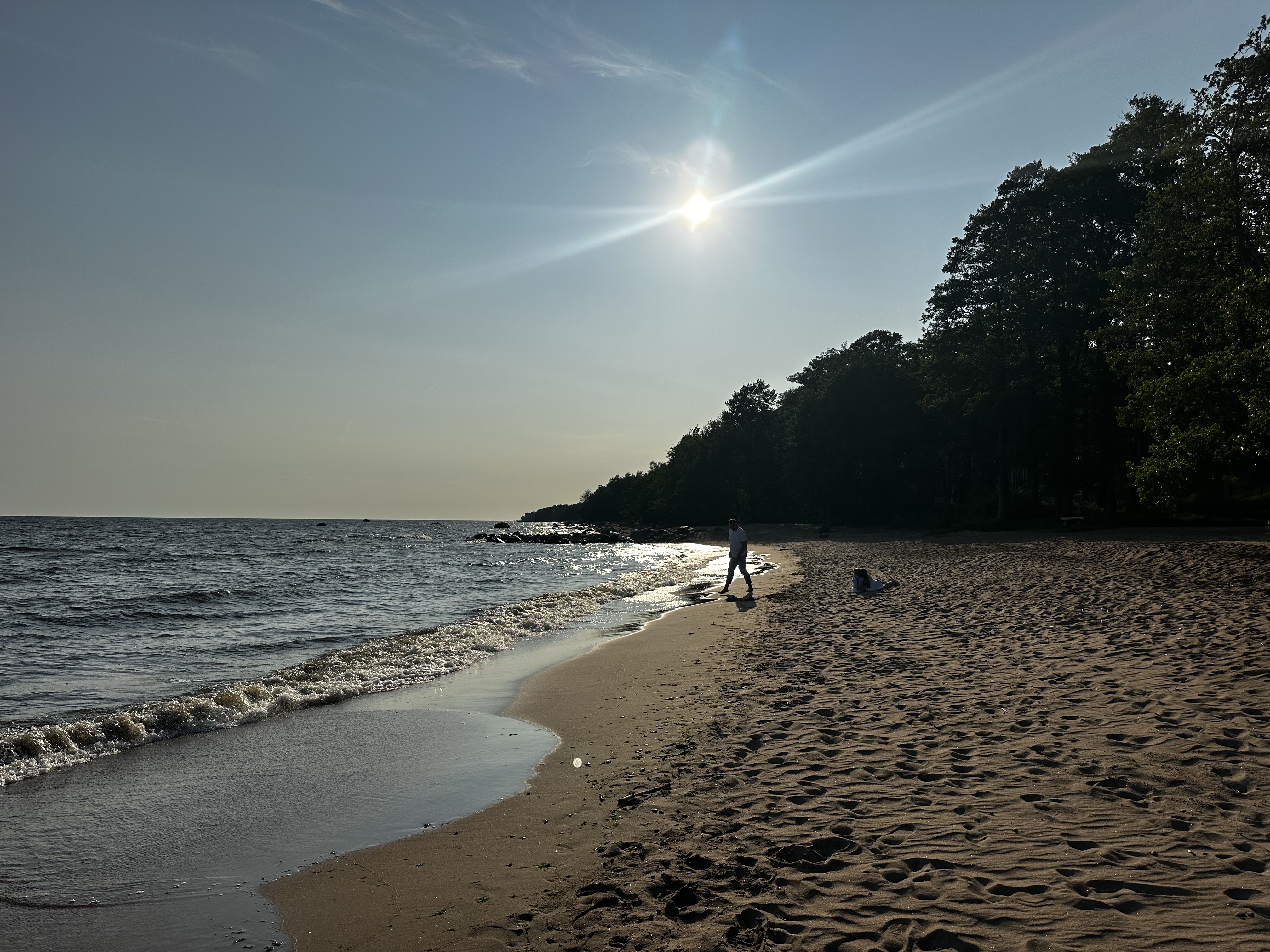 Неспешная прогулка по сосновому лесу и дорога до частного пляжа Финского залива, всего в 15 минутах пешком от нашей базы.