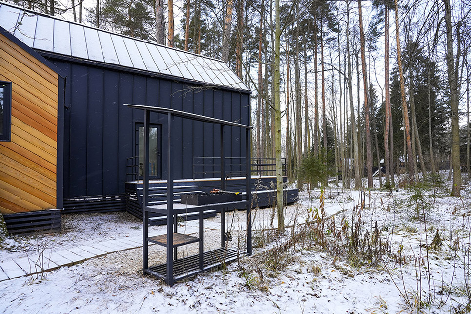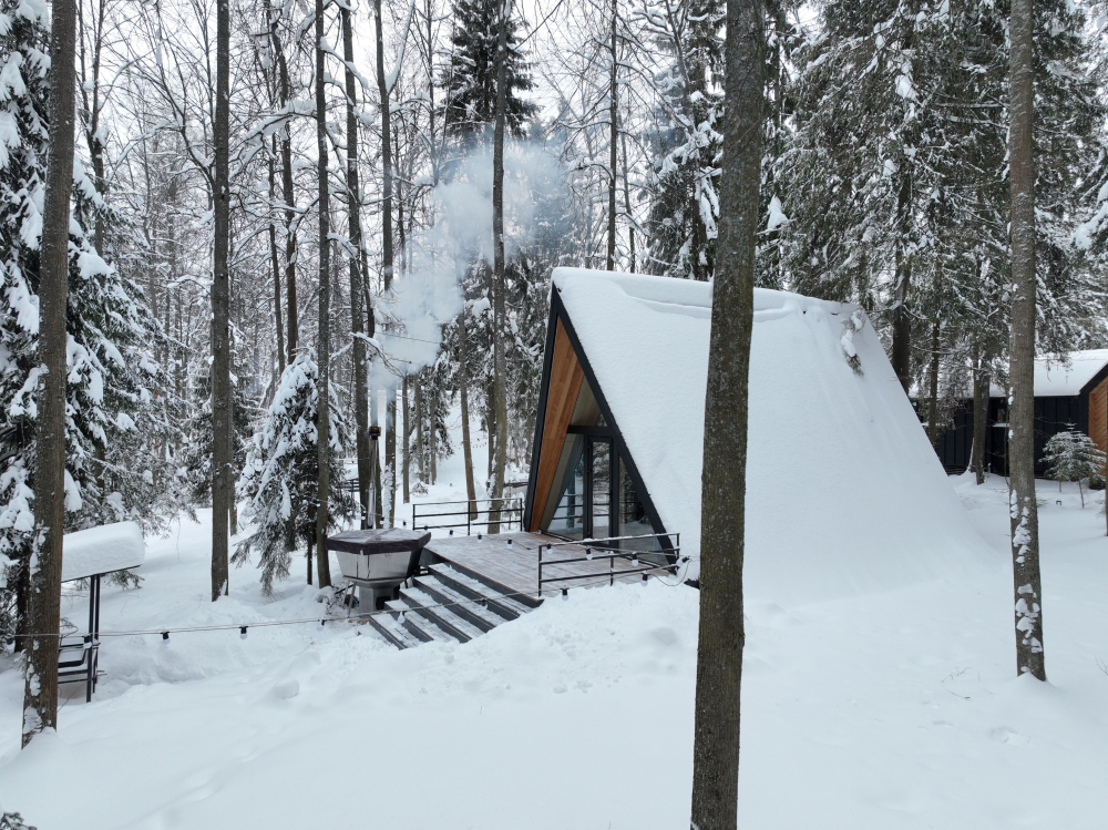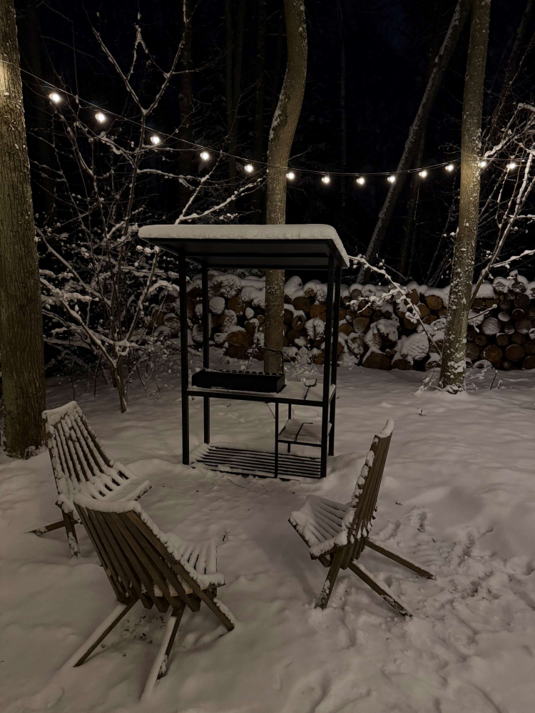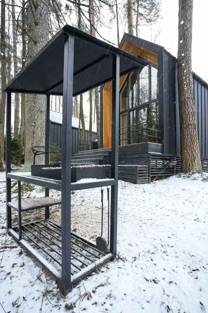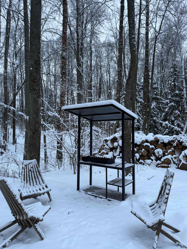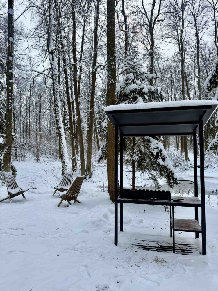 Мангальная зона есть около домиков БарнХаус 1, БарнХаус 2, БарнХаус 3, БарнХаус 4, БарнХаус 5 с сауной, Панорамный домик, Панорамный домик с сауной, Афрейм 1, Афрейм 2, Афрейм 3.