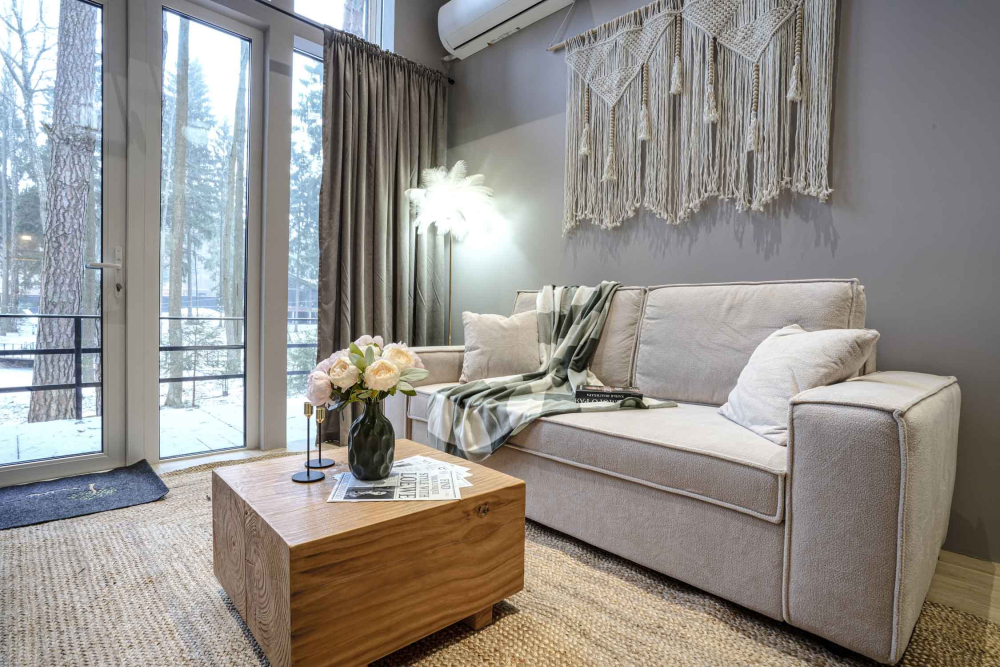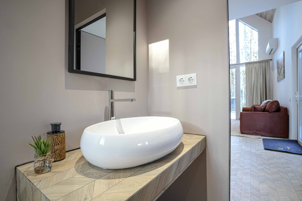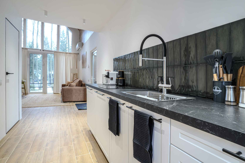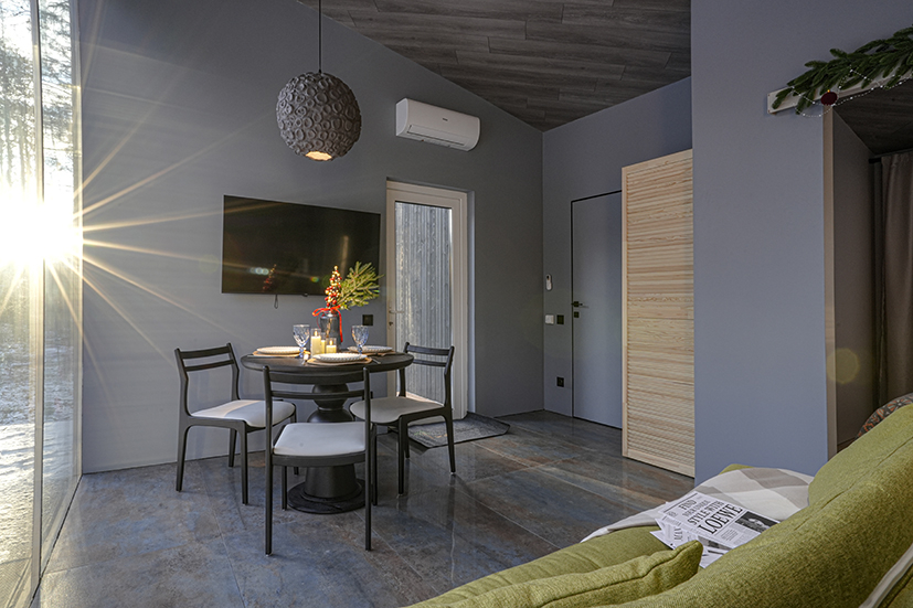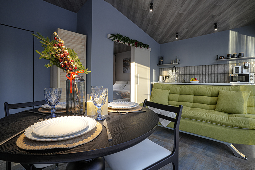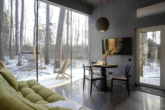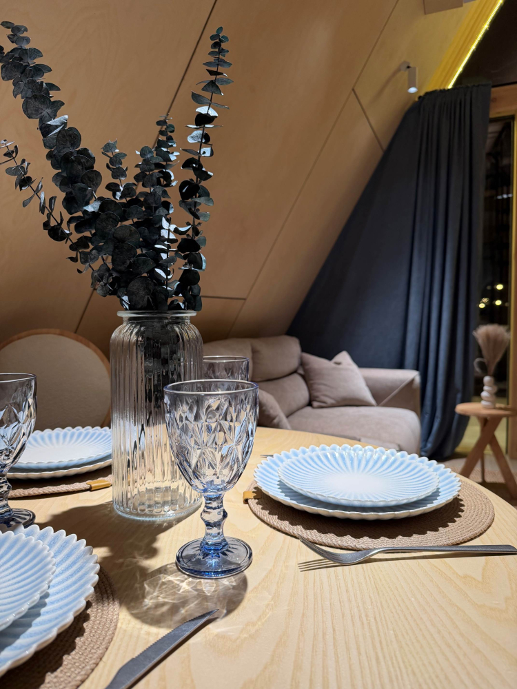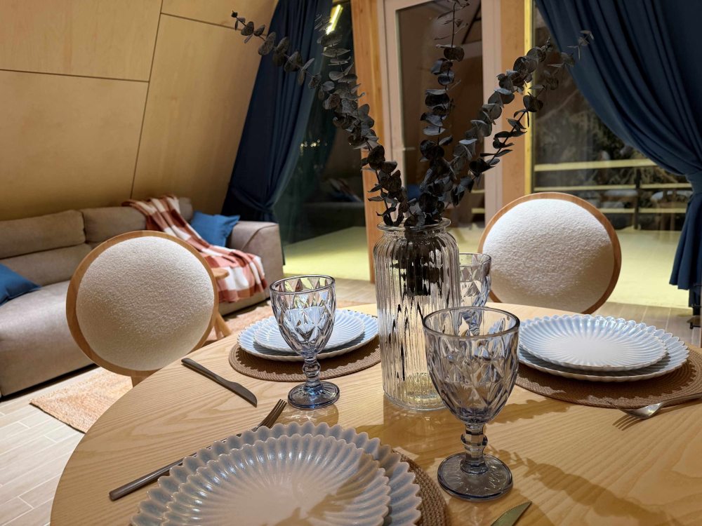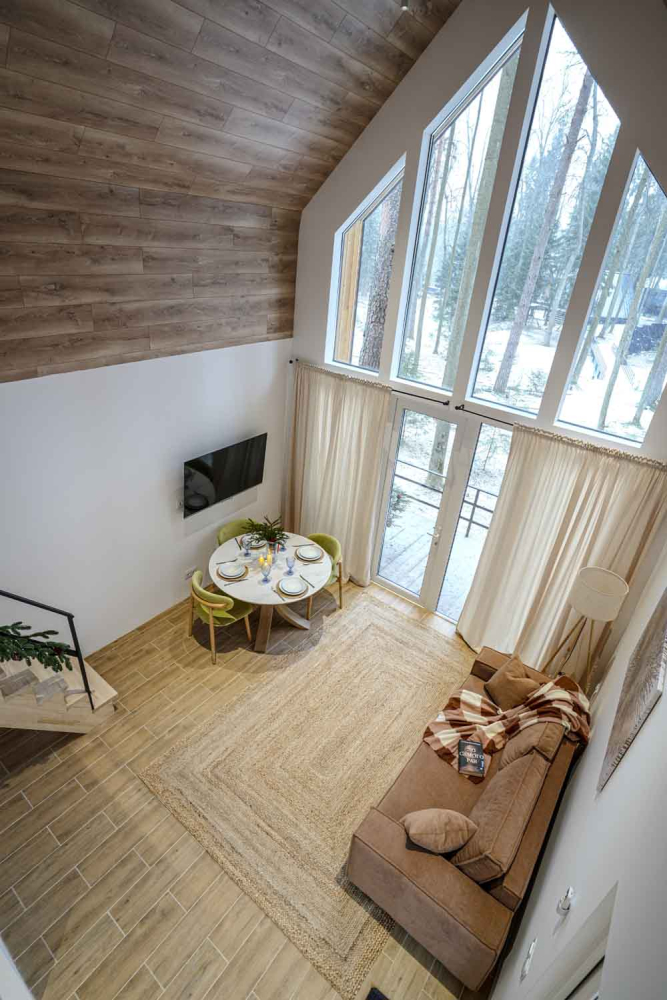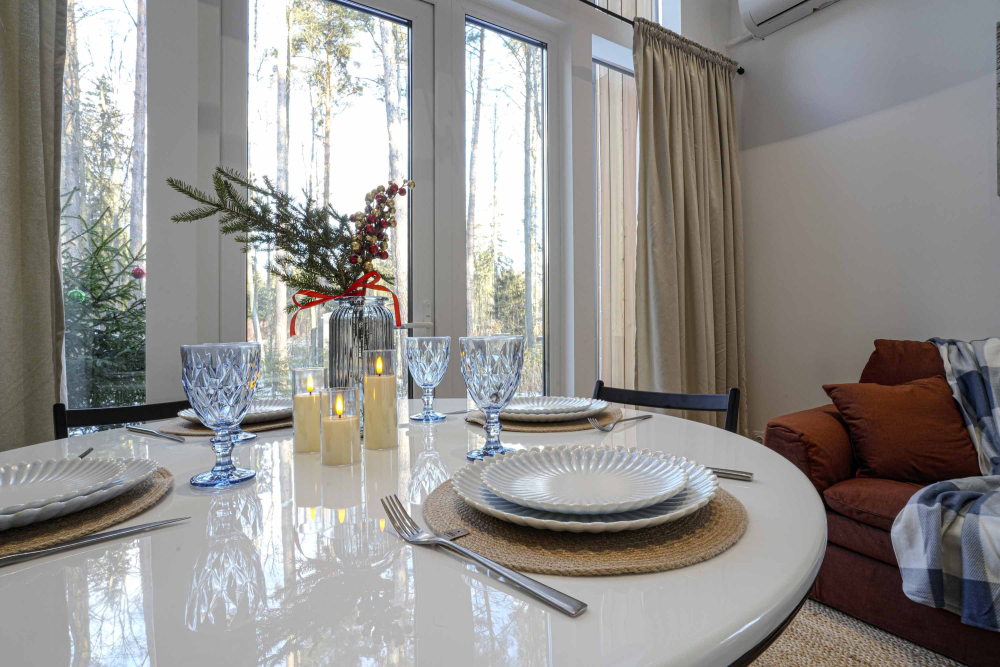 Каждый дом полностью укомплектован современной мебелью и техникой. Выполнен стильный дизайнерский ремонт, созданы уютные интерьеры, в которых комфортно в любое время года. Вам не нужно ни о чём заботиться — просто приезжайте и наслаждайтесь отдыхом.