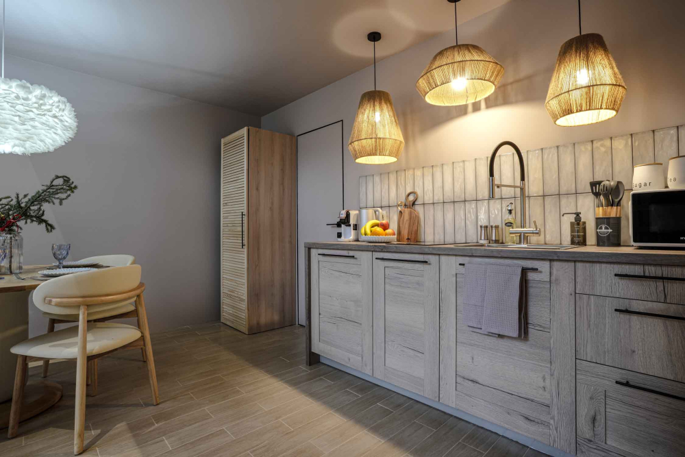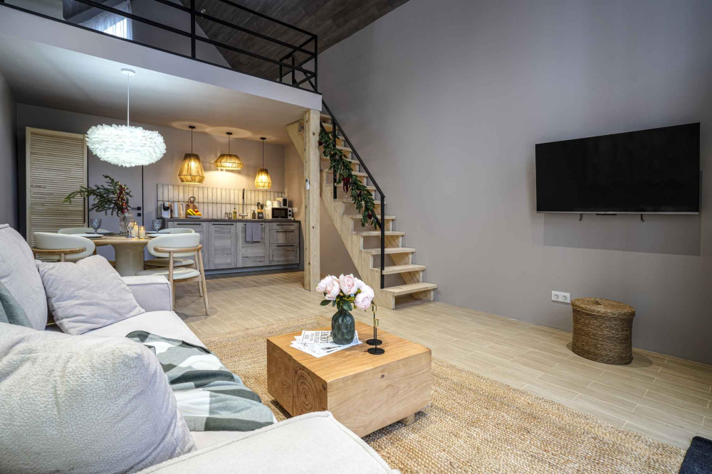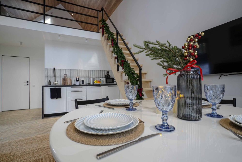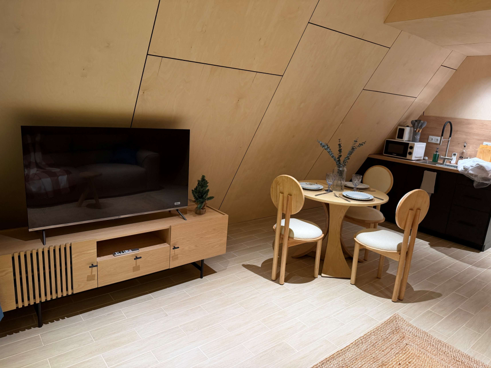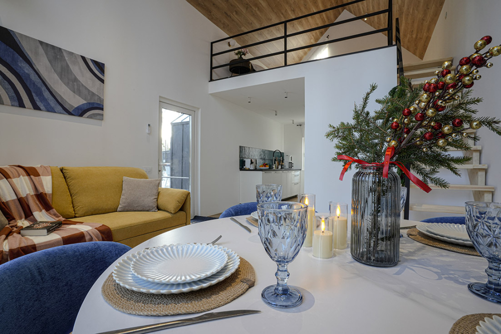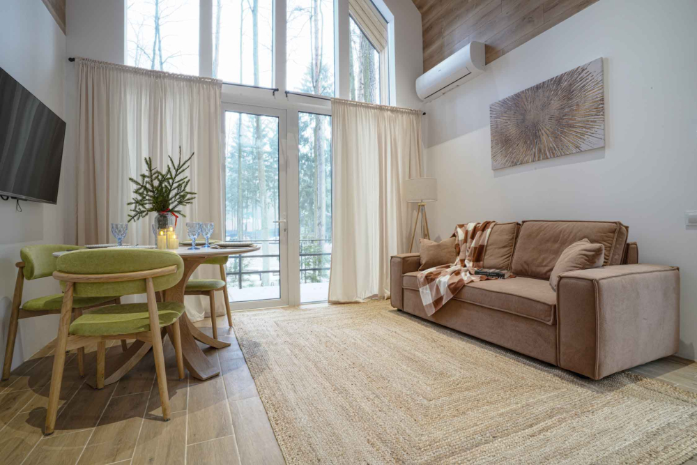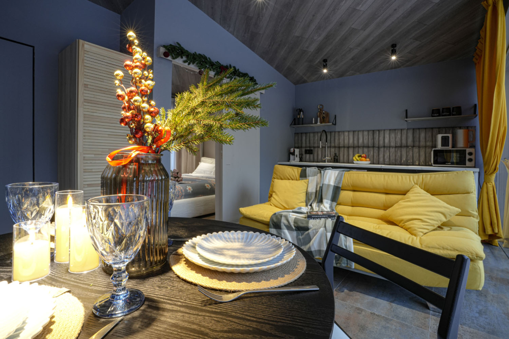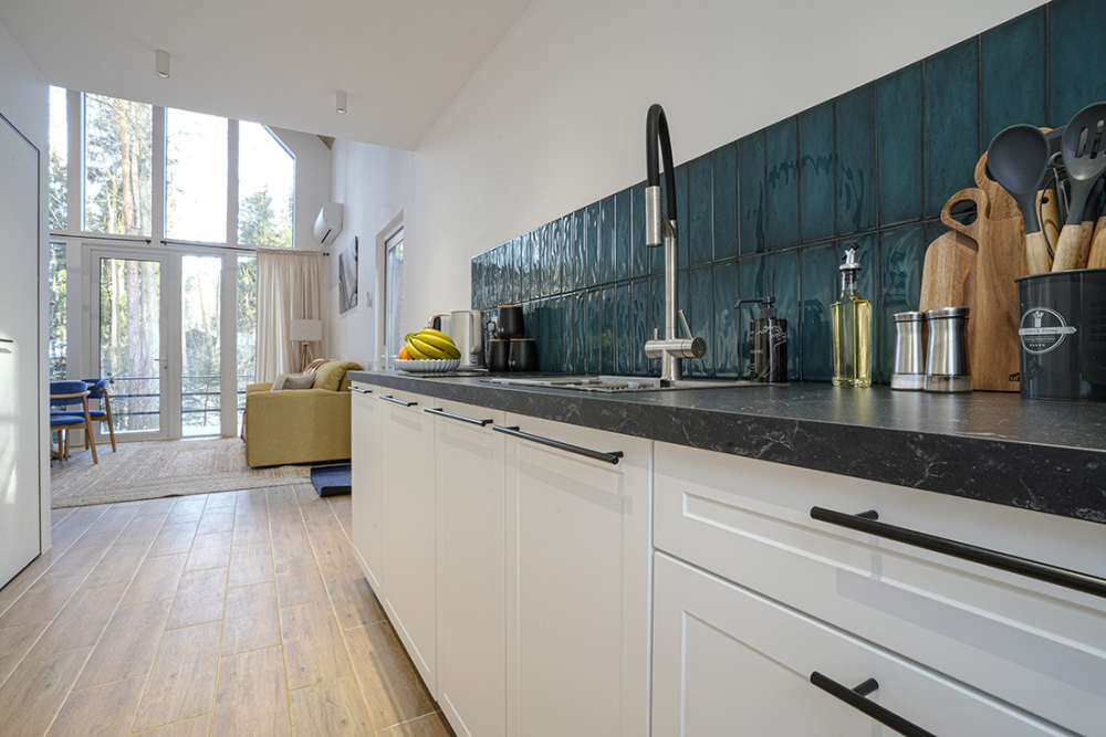 Каждый дом полностью укомплектован современной мебелью и техникой. Выполнен стильный дизайнерский ремонт, созданы уютные интерьеры, в которых комфортно в любое время года. Вам не нужно ни о чём заботиться — просто приезжайте и наслаждайтесь отдыхом.