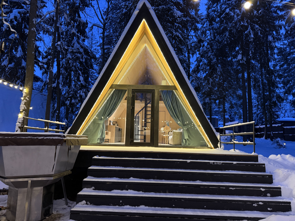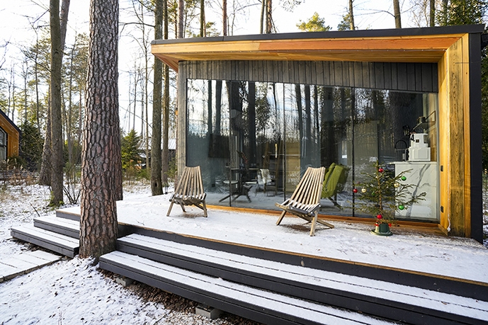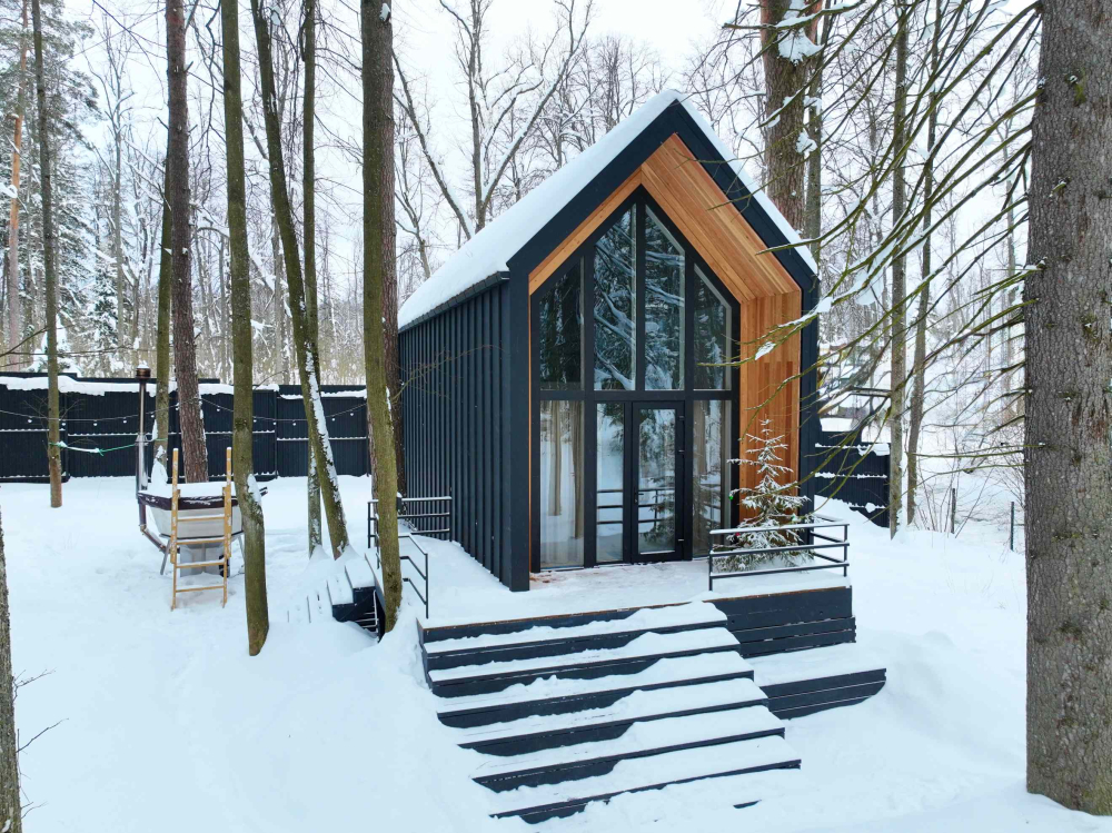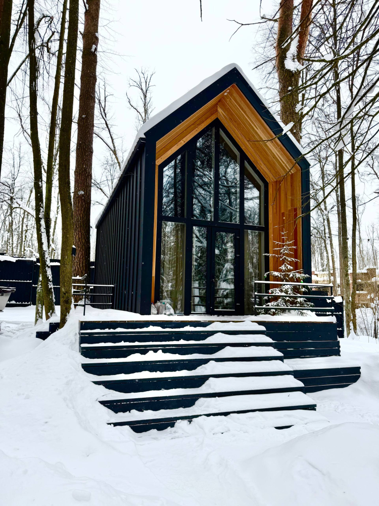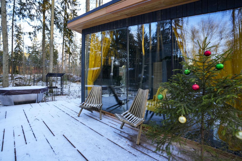 - Панорамный домик с сауной