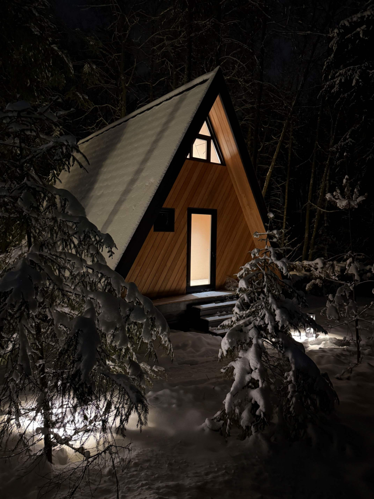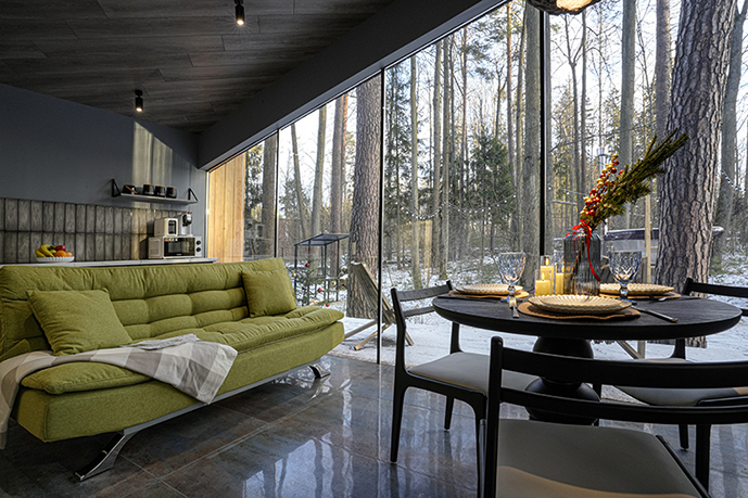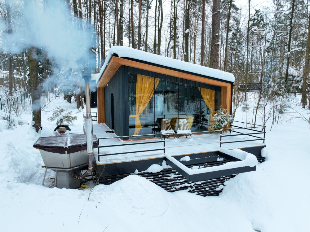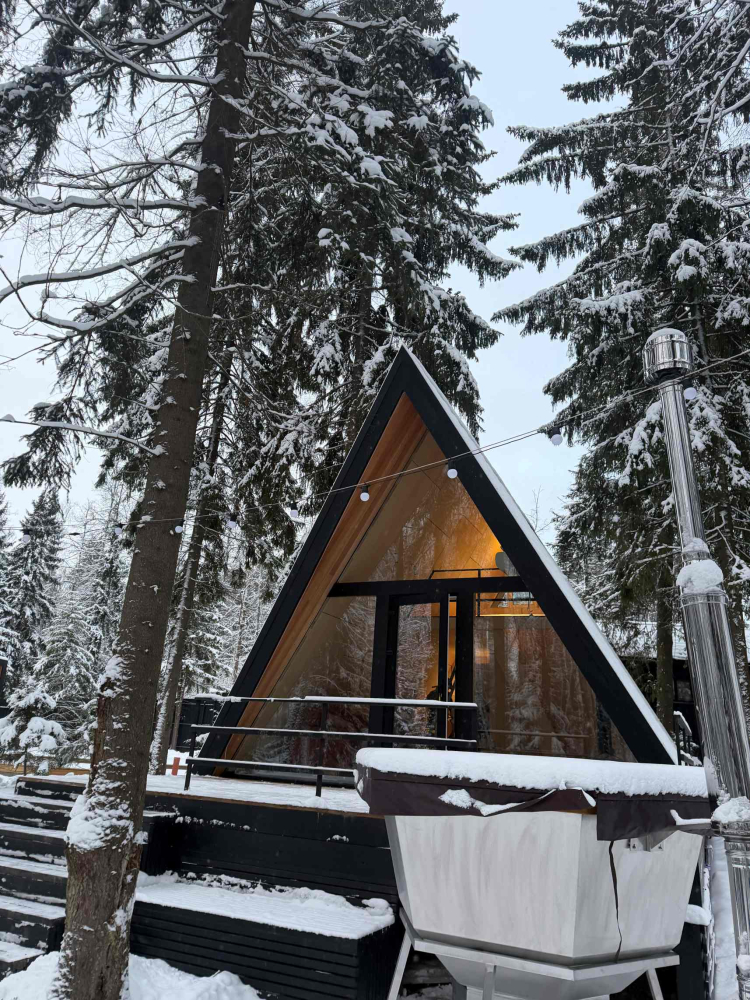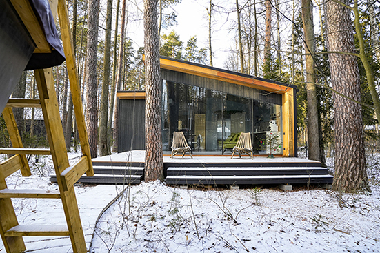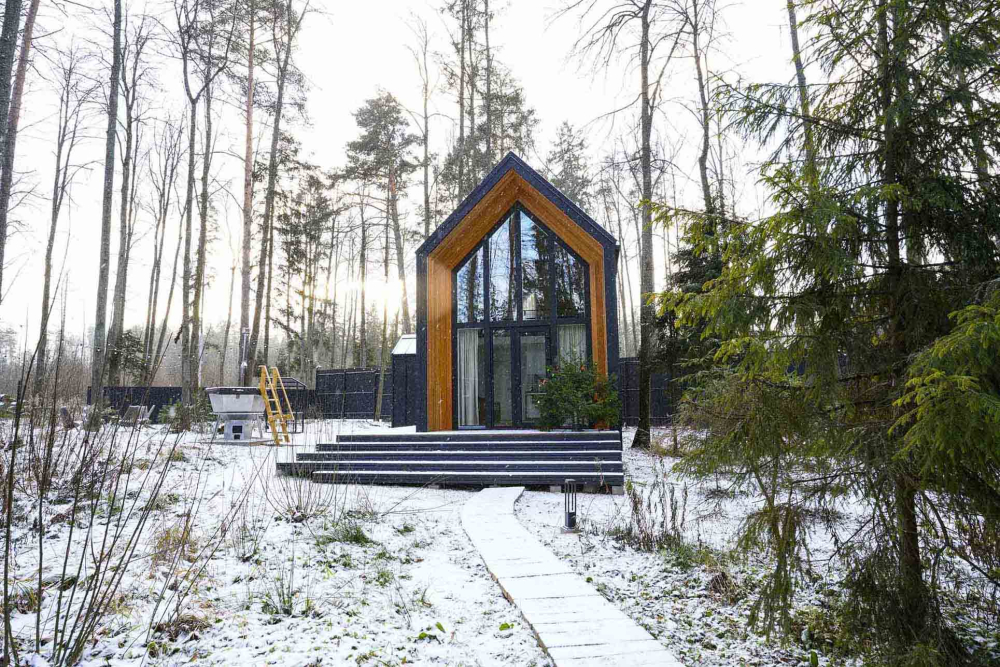 - Панорамный домик с сауной