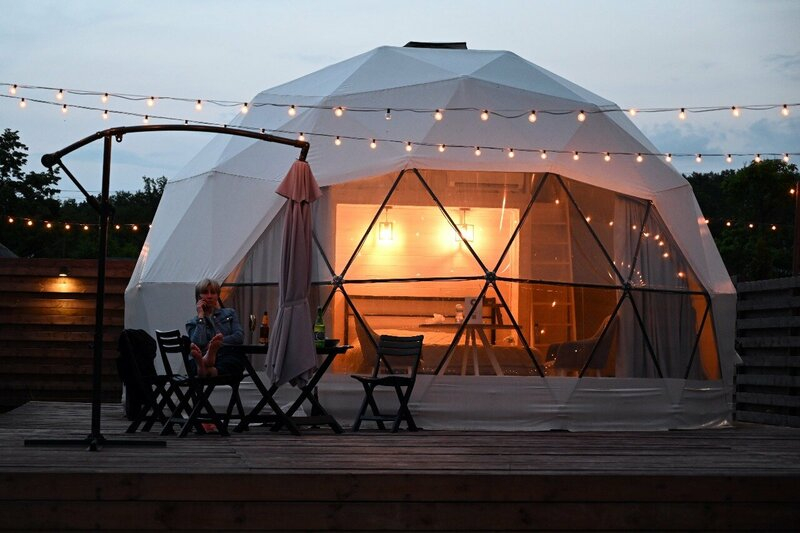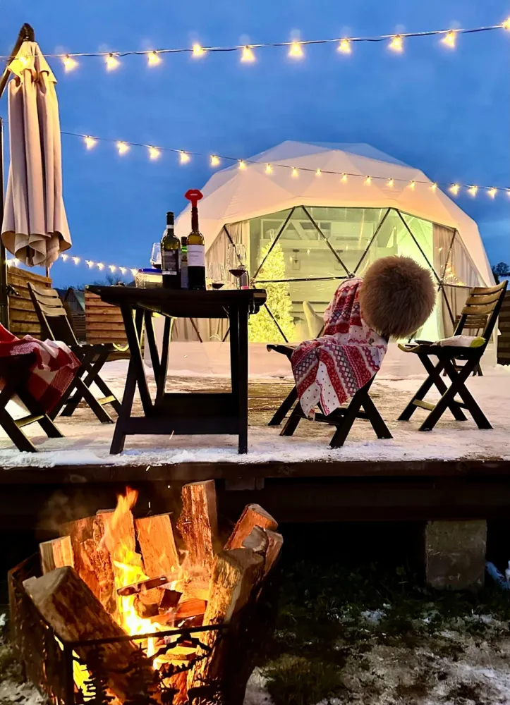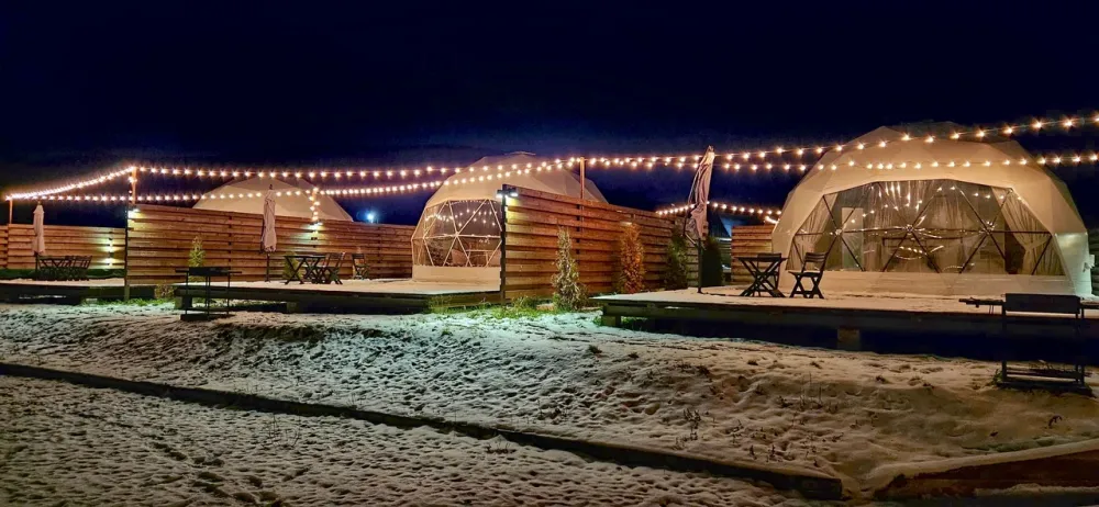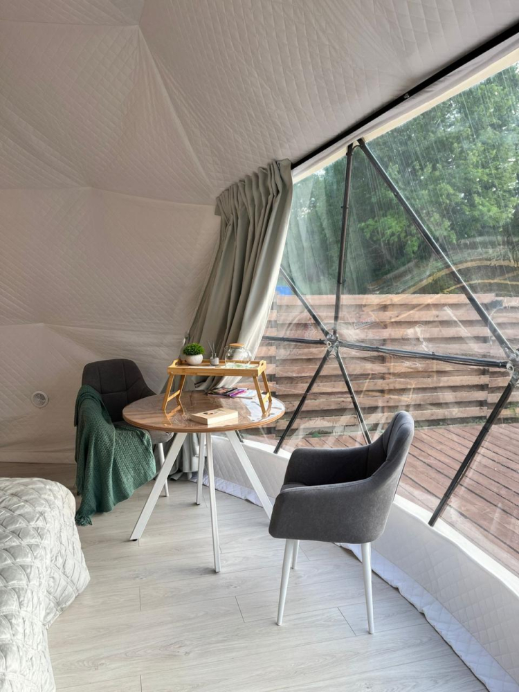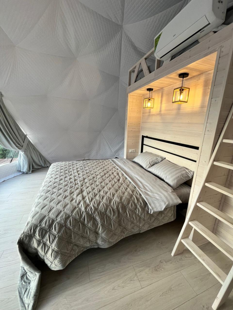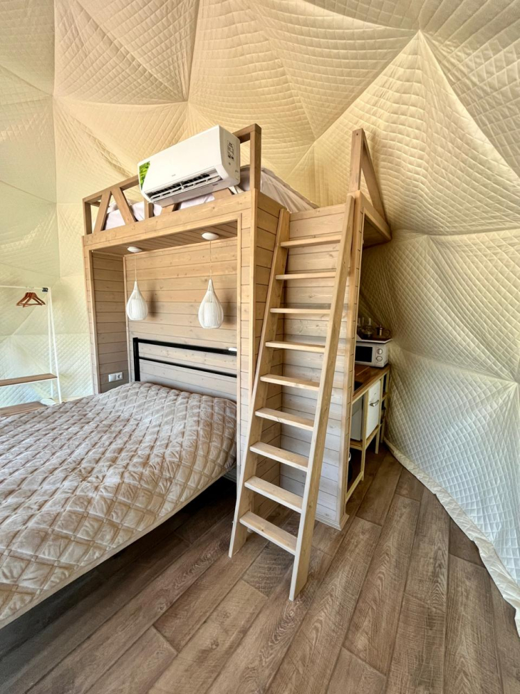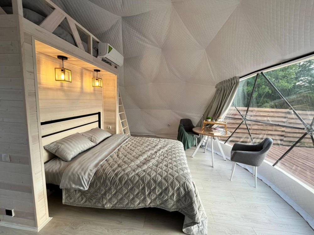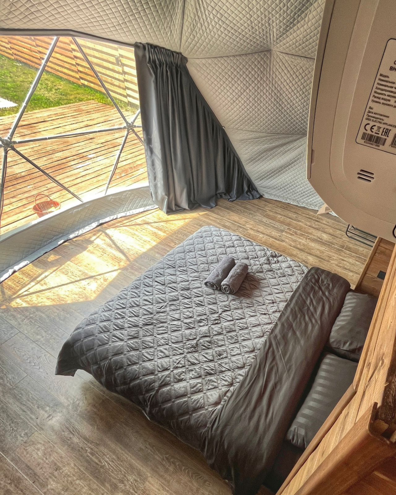 Сферы расположены на оптимальном расстоянии друг от друга, ограждены заборами и оснащены собственными мангальными зонами, благодаря чему гости могут наслаждаться уединением и спокойствием. Просторная территория и продуманное размещение домиков создают ощущение приватности и полного единения с природой.