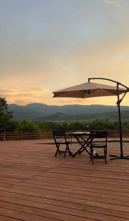 Каждый домик имеет собственный выход на террасу, где особенно приятно начинать утро с чашкой кофе или провожать закат. А вечером, когда зажигаются огни, территория превращается в настоящую сказку.