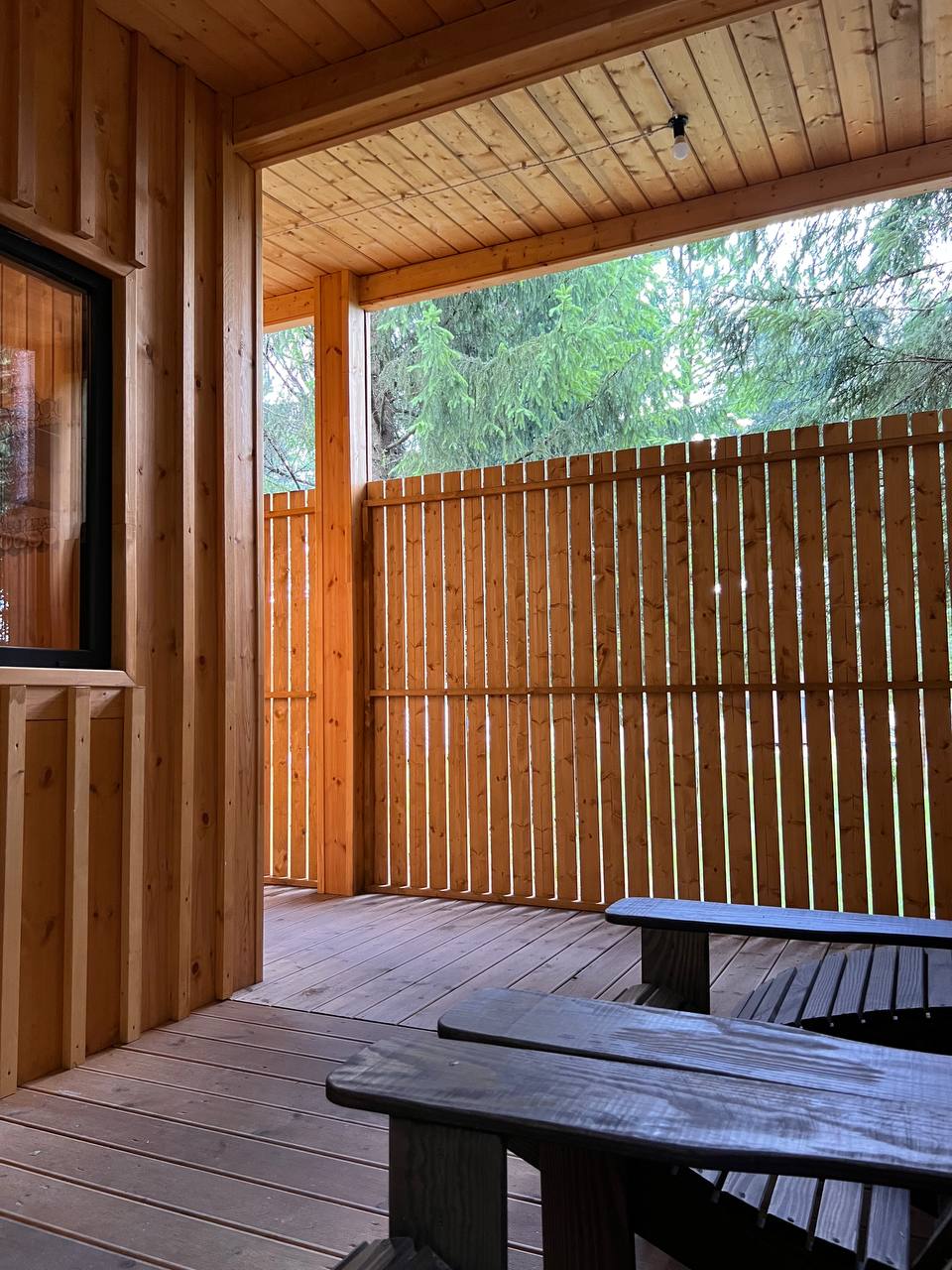 Все дома расположены среди леса — из окон открывается живописный вид, который меняется в зависимости от времени года. Это идеальное место для перезагрузки и отдыха вдали от городского шума.