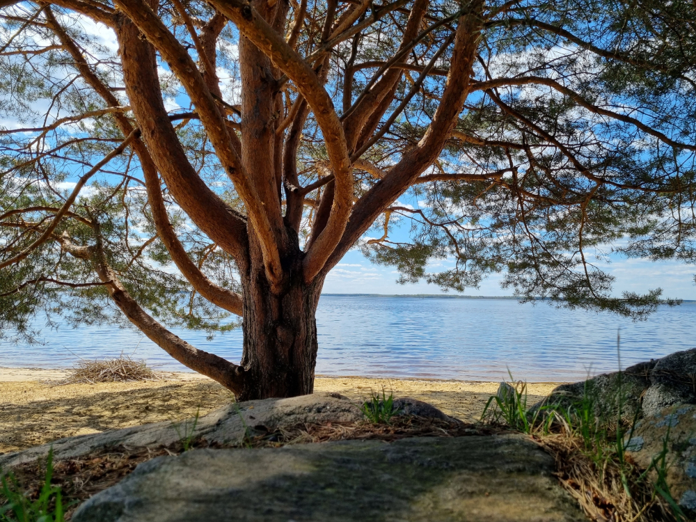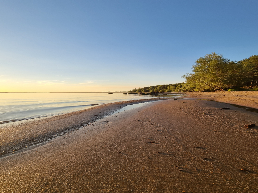 Прямо рядом с нами песчаный пляж Рыбинского моря