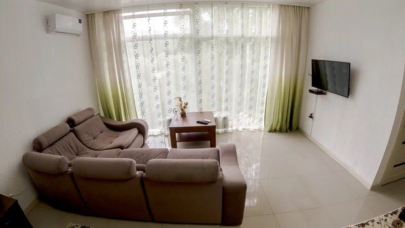 то однокомнатное размещение с двуспальной кроватью и удобной раскладной кроватью, рассчитанное на комфортное проживание до трёх гостей. В номере есть холодильник, чайник, кондиционер, телевизор. Гости также могут пользоваться общей кухонной зоной: доступна электроплита и микроволновая печь для разогрева или приготовления пищи.